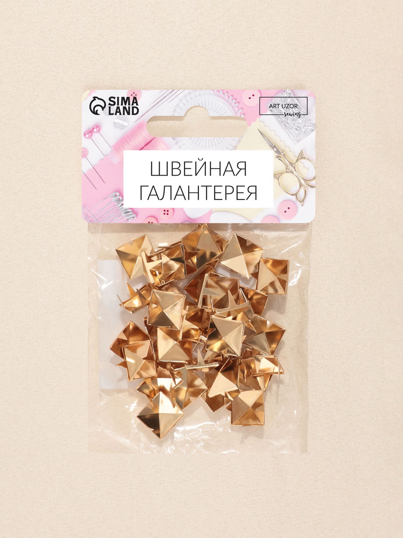 Хольнитен "Пирамида", 11 x 11 мм, 4 крепления, 50 шт, цвет золотой, 110х110х1 см., Арт Узор, Китай