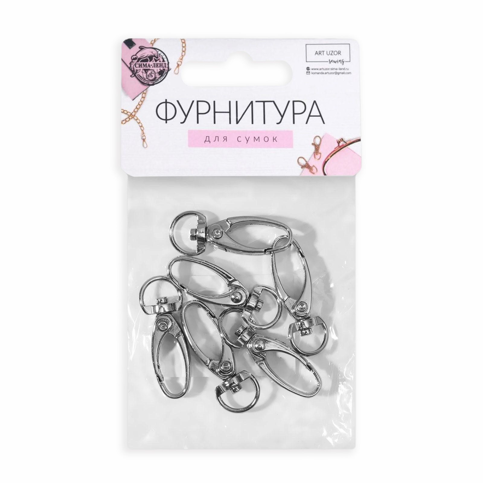Карабин металлический, 38x12 мм / 10x1 мм, 6 шт., цвет серебряный, 7x10x1 см., Арт Узор, Китай