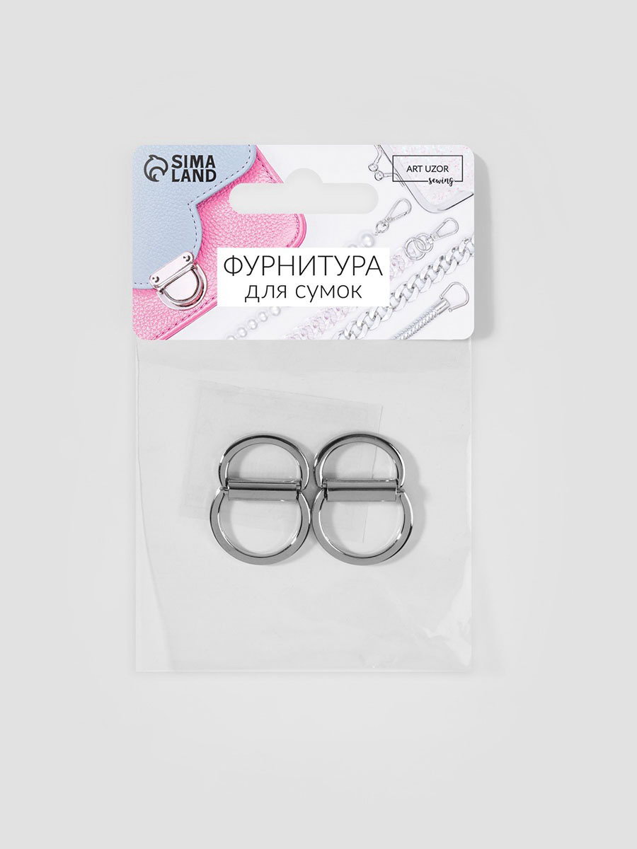 Полукольцо для сумок двойное, d=15 мм, толщина - 1 мм, 2 шт., цвет серебряный, 7x10x0.5 см., Арт Узор, Китай