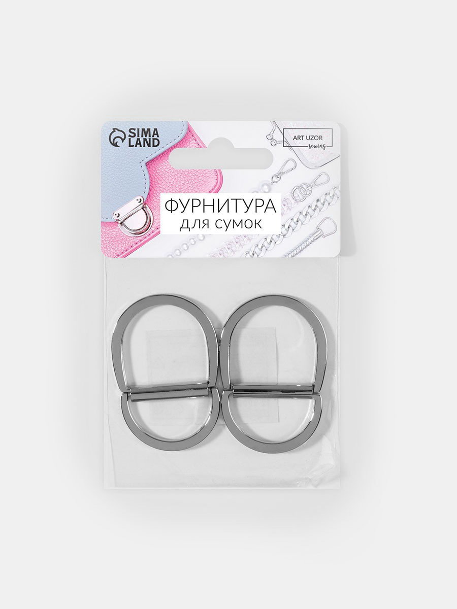 Полукольцо для сумок двойное, d=25 мм, толщина - 2.5 мм, 2 шт., цвет серебряный, 7x10x0.5 см., Арт Узор, Китай