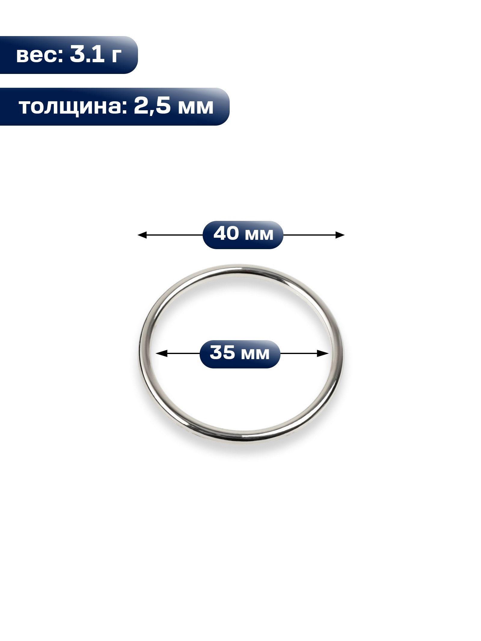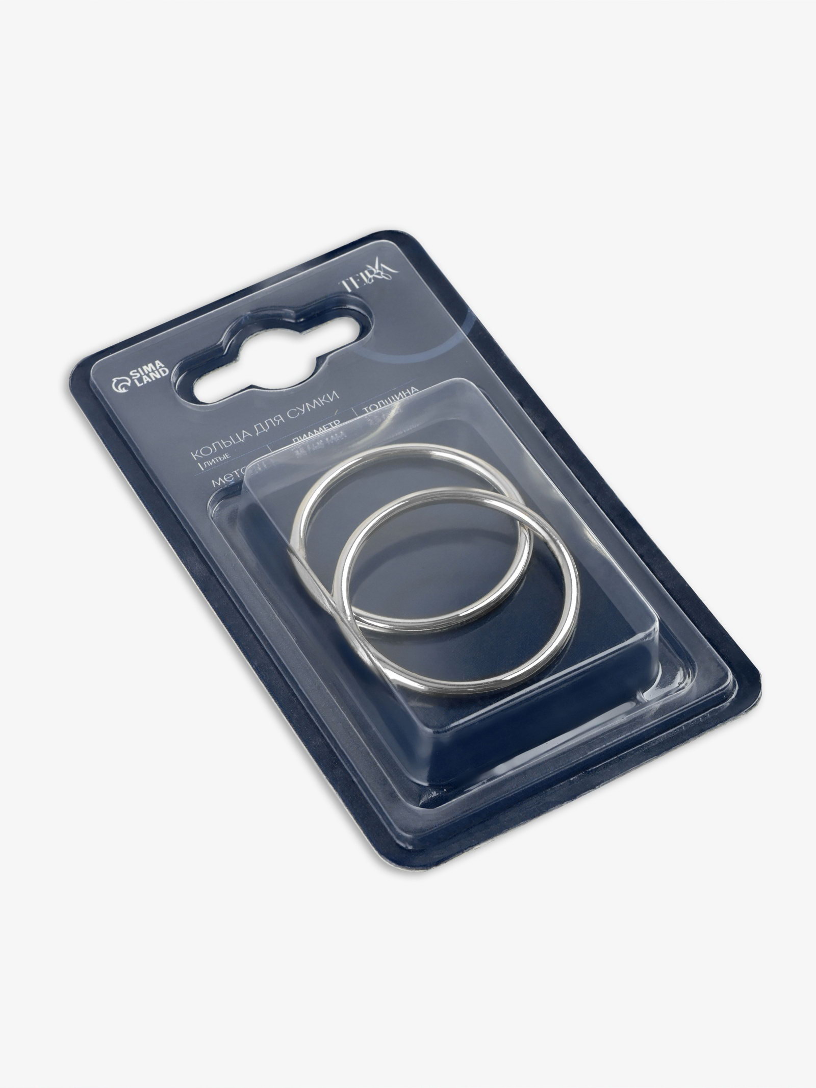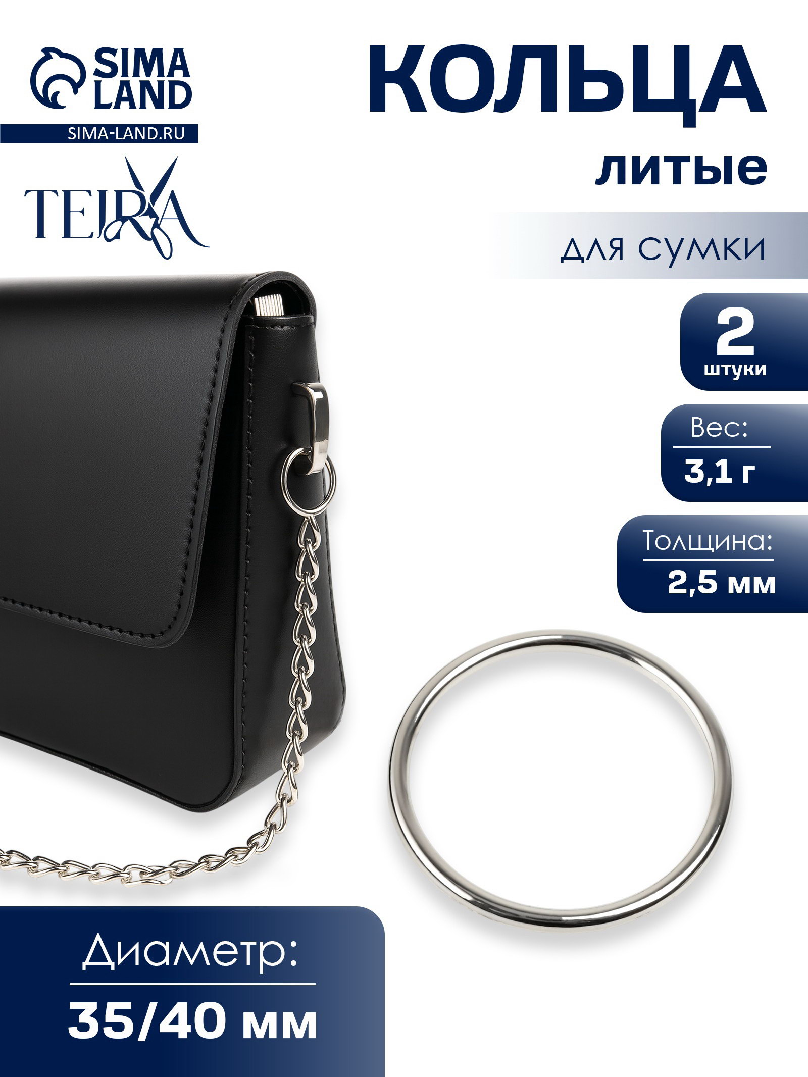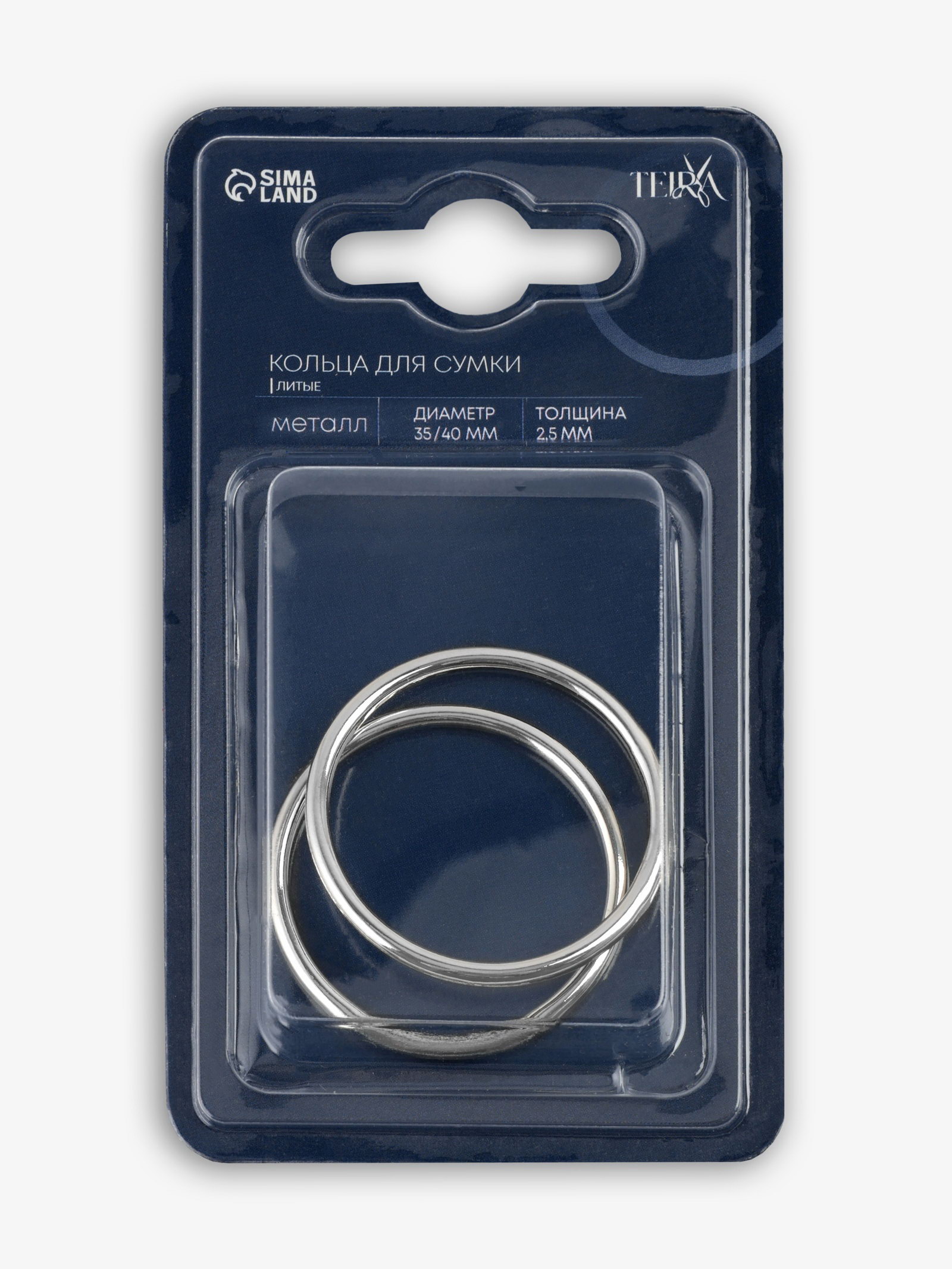 Кольцо литое для сумки, d=35/40 мм, набор 2 шт., 3.1 г, s=2.5 мм, цвет серебряный, 6.8x12.1x1 см., TEIRA, Китай