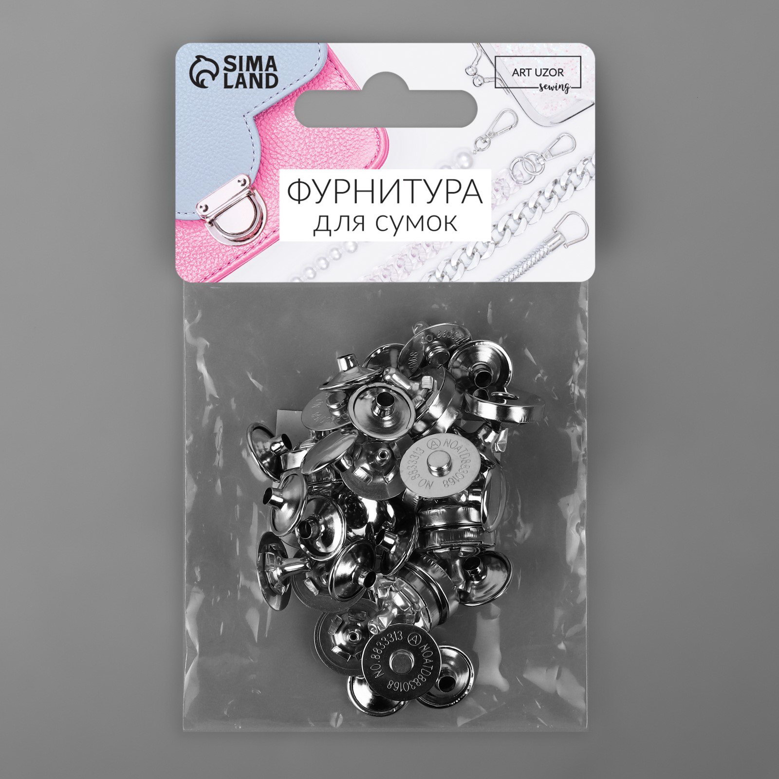 Кнопки магнитные, установочные, d=14 мм, 10 шт., цвет серебряный, 140х140х1 см., Арт Узор, Китай