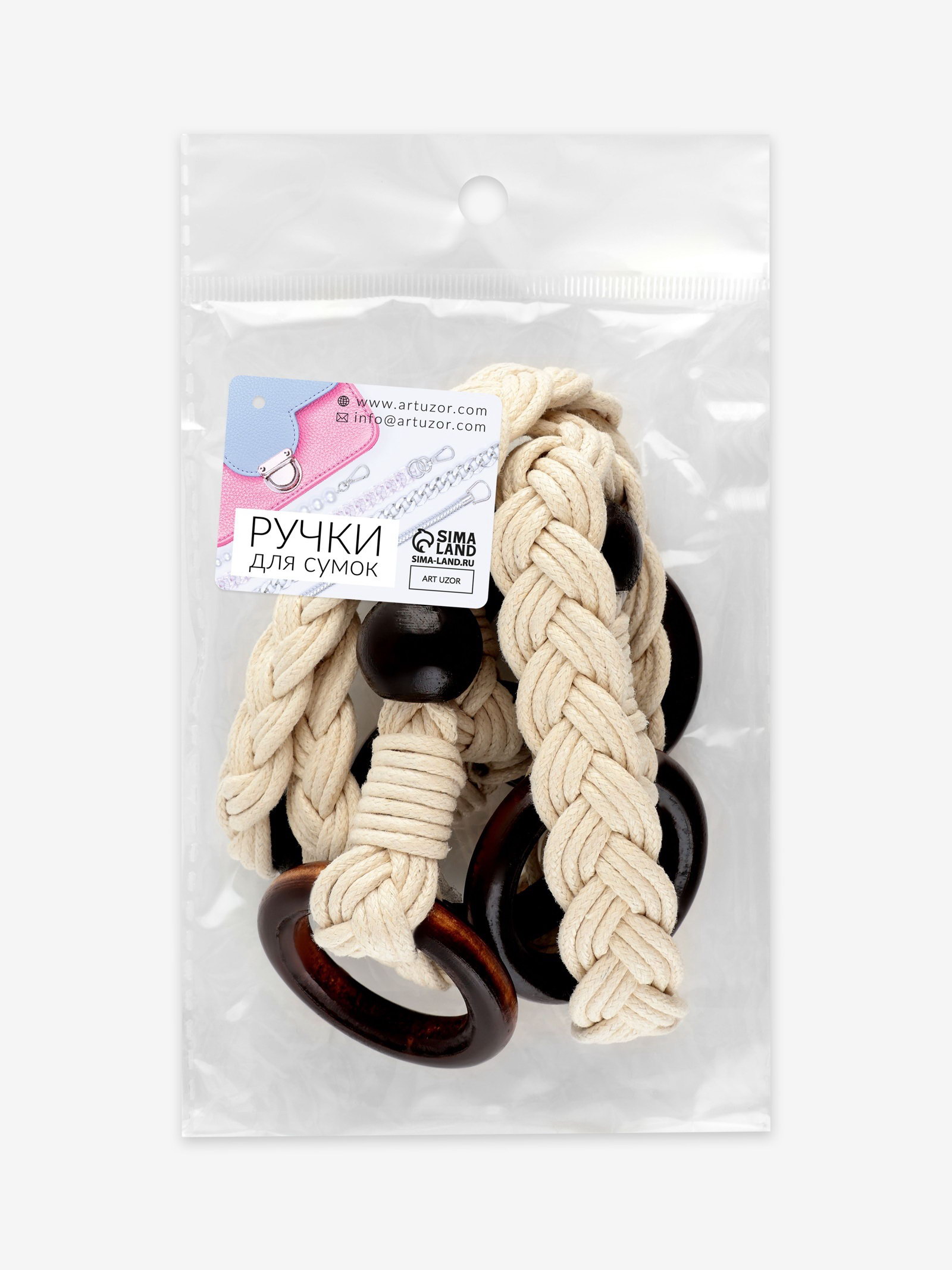 Ручки для сумки, 2 шт., вощёный шнур/дерево, 48x2 см, бежевые, 2x48x0.5 см., Арт Узор, Китай