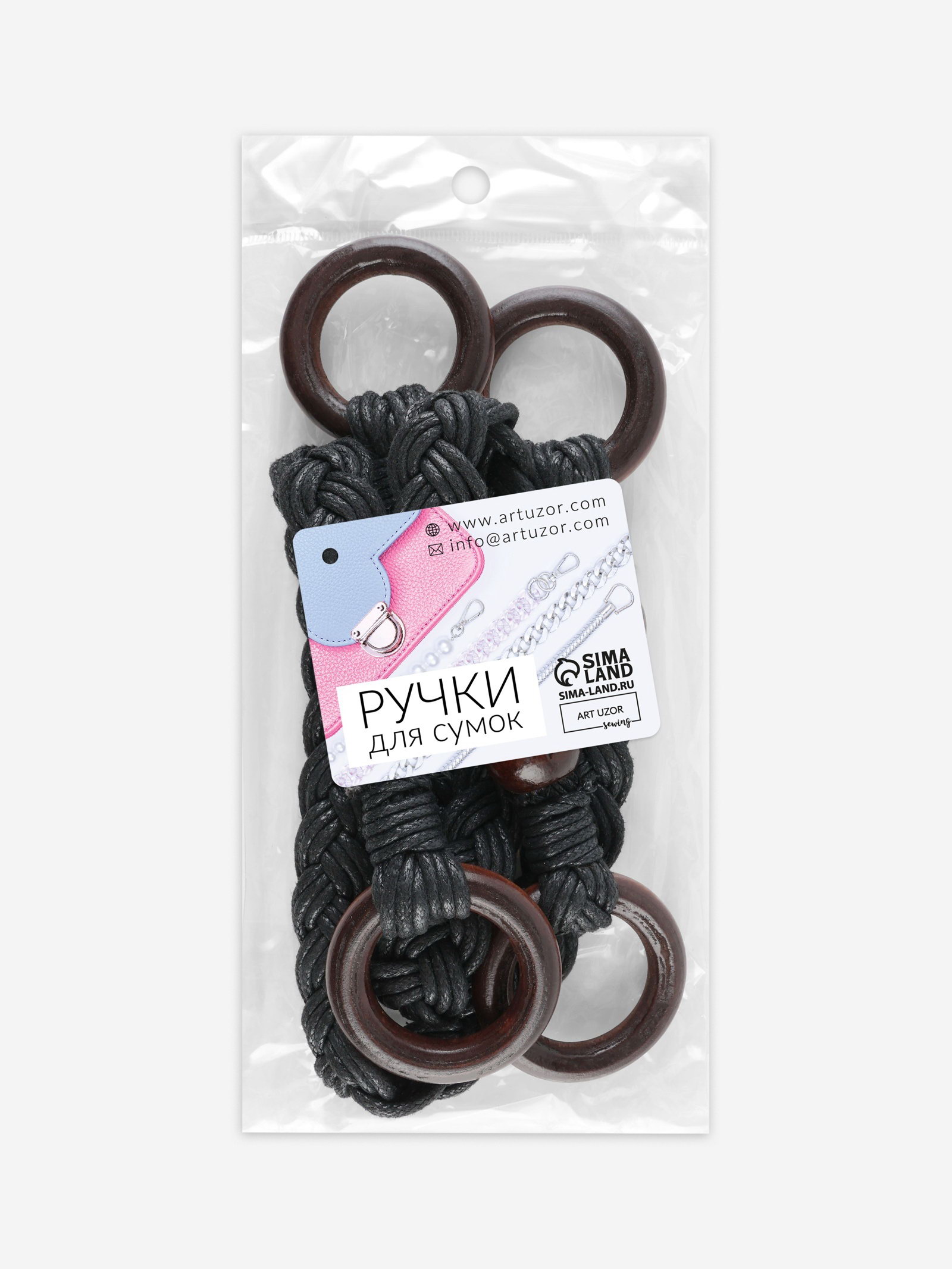 Ручки для сумки, 2 шт., вощёный шнур/дерево, 48x2 см, чёрные, 2x48x0.5 см., Арт Узор, Китай