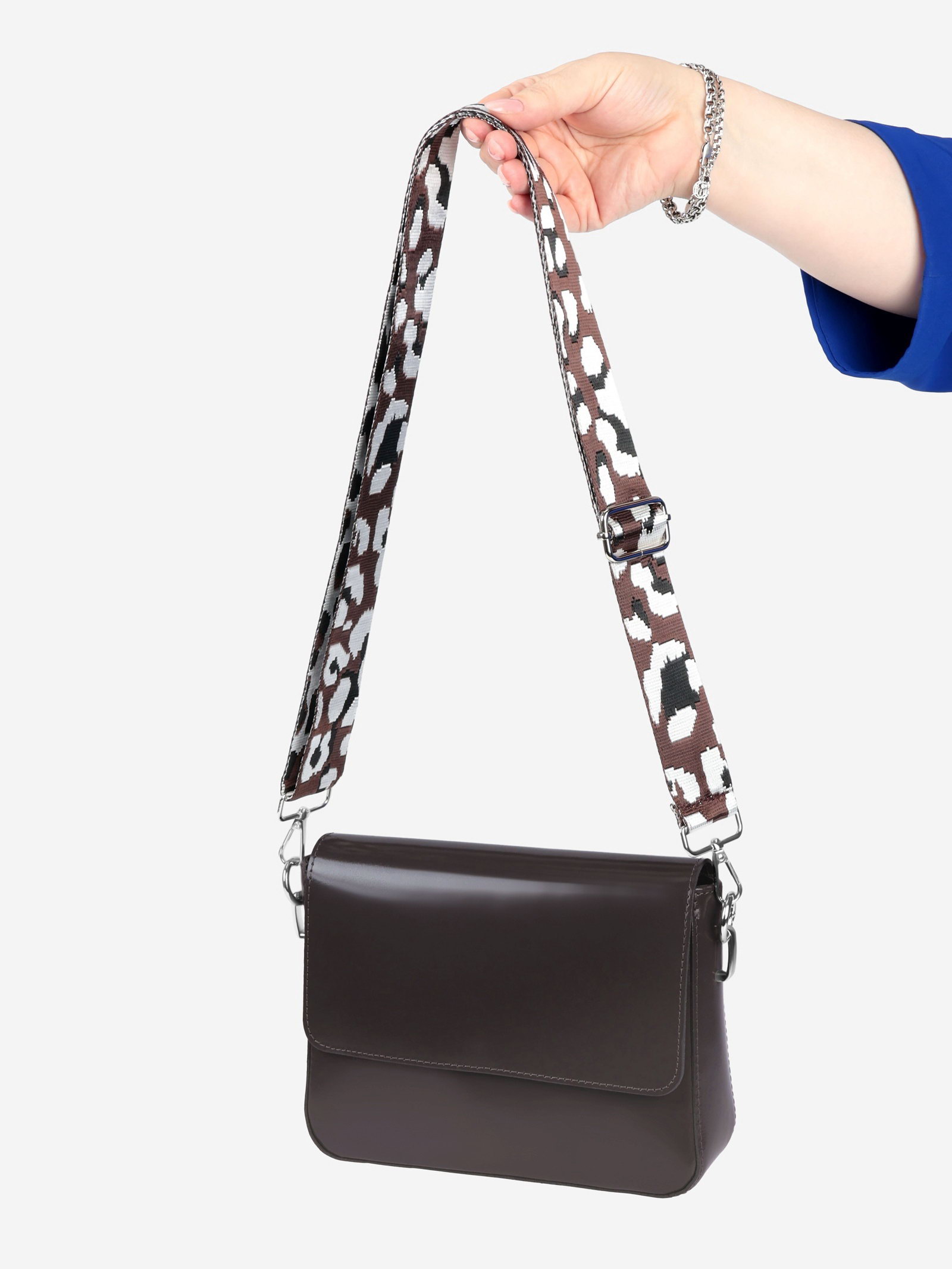 Размер упаковки: 9.5 x 3.5 x 18 см. Длина ручек, см: 139 Длина ручек, см: 139 tnved: 6307909600 Цвет фурнитуры: Серебряный Цвет: Разноцветный ![]() Элегантный ремень с леопардовым принтом стильная альтернатива для вашей сумки. Коричневый фон с эффектным молочным узором и серебристыми карабинами создает благородный контраст, сохраняя при этом универсальность. Длина 139 см удобна для ношения через плечо. Отличительные особенности