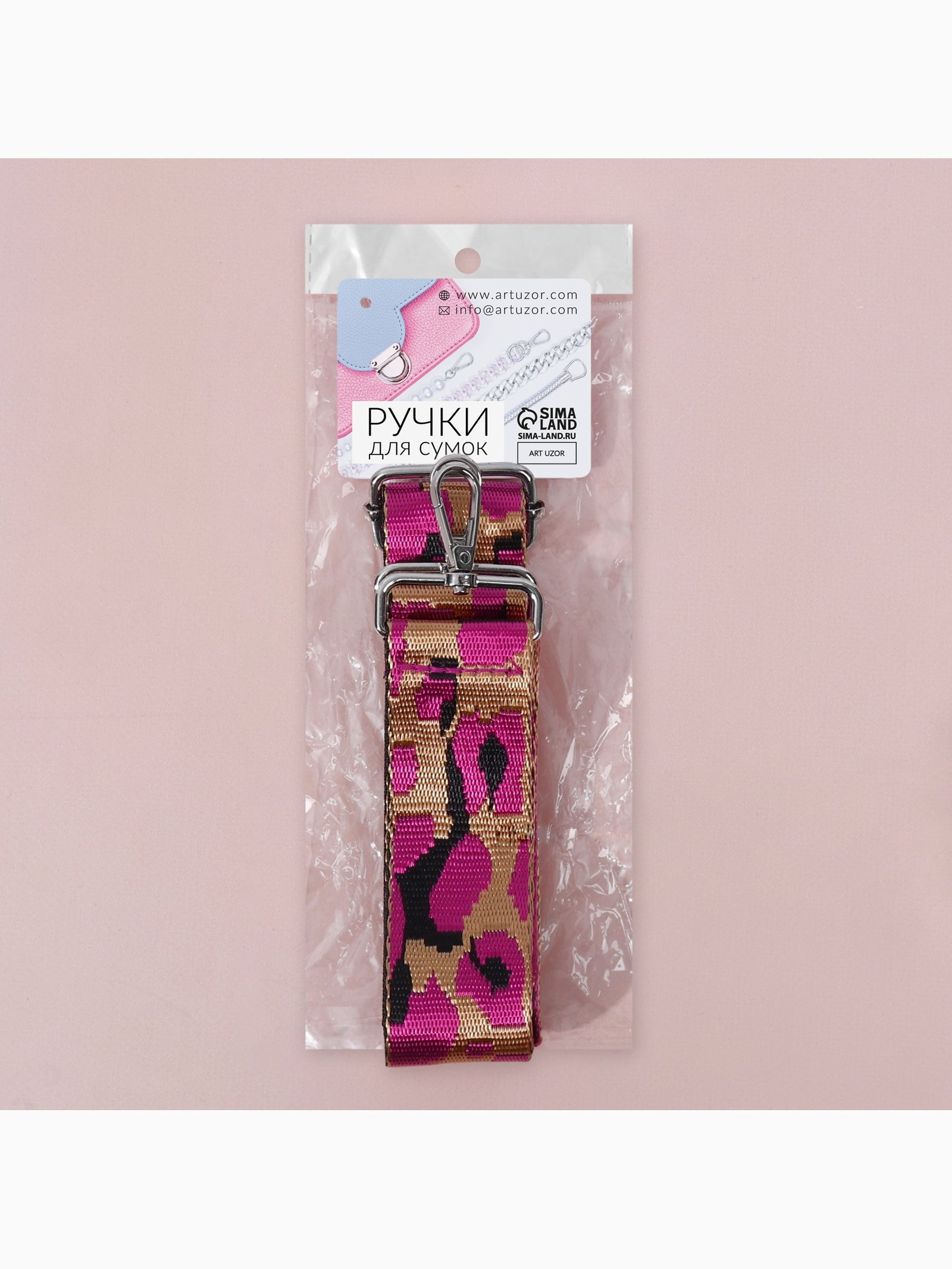 Ручка для сумки "Розовый леопард", стропа, с карабинами, 139+-3x3.8 см, ярко-розовая, 3.8x140x0.2 см., Арт Узор, Китай