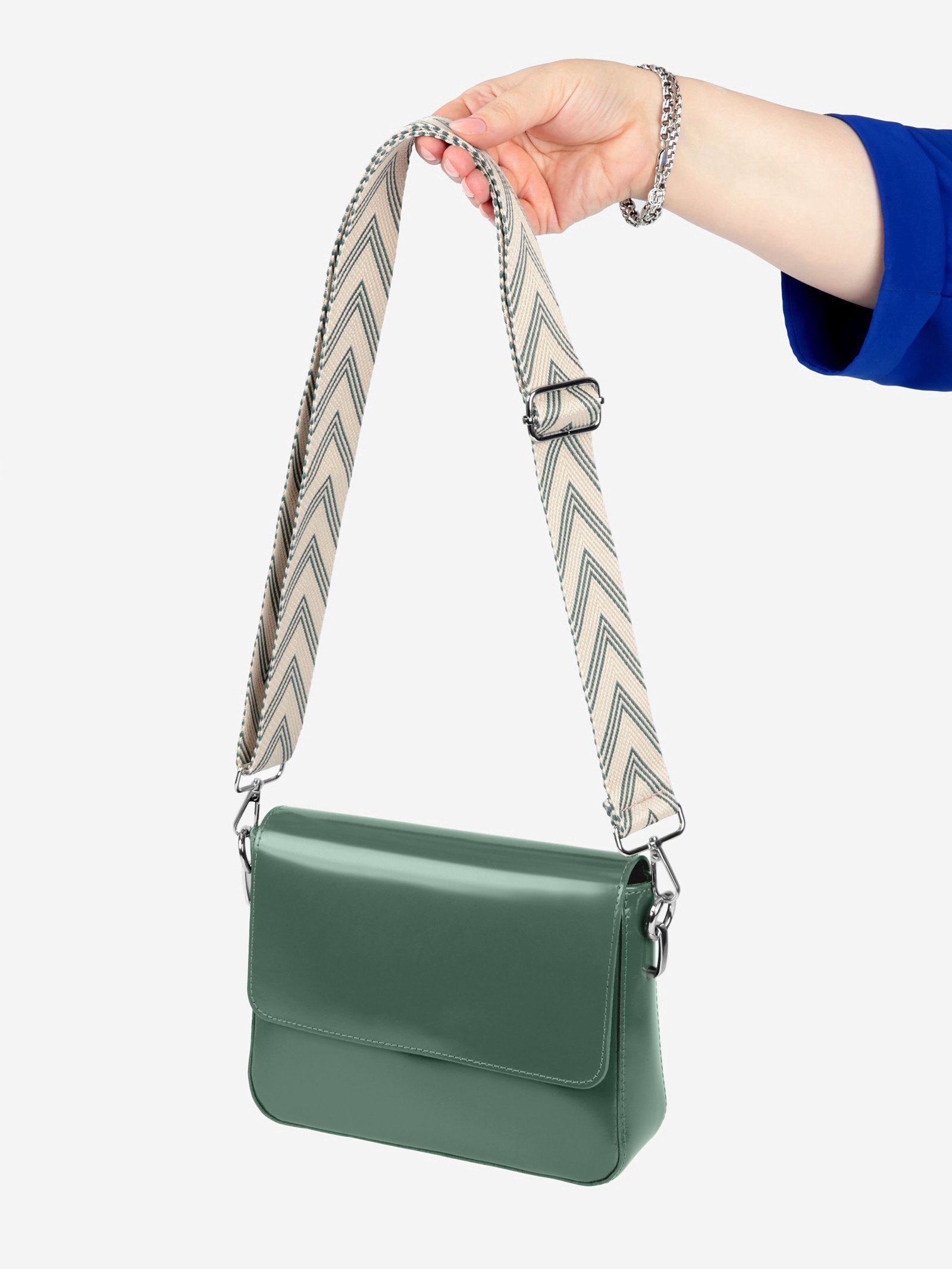 С чем сочетать Идеальное дополнение к городскому стилю: сочетается с кожаными рюкзаками, текстильными сумками и минималистичными аксессуарами. Бело-зелёная гамма с серебристыми деталями создает сдержанный, но выразительный образ. | ||
