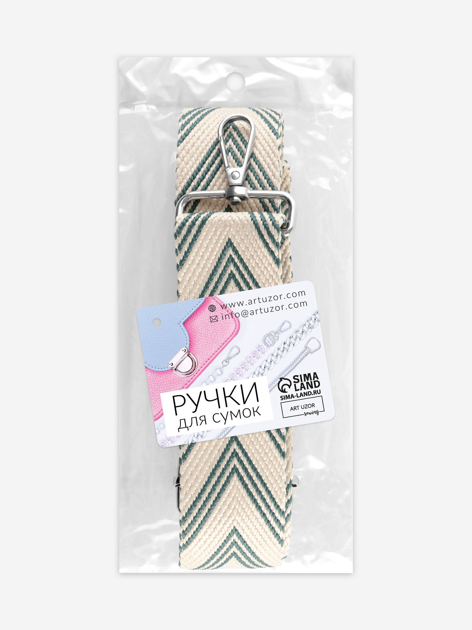 Ручка для сумки "Стрелки тройные", с карабинами, 139+-3x3.8 см, бежевая, серо-зелёная, 3.8x140x0.2 см., Арт Узор, Китай