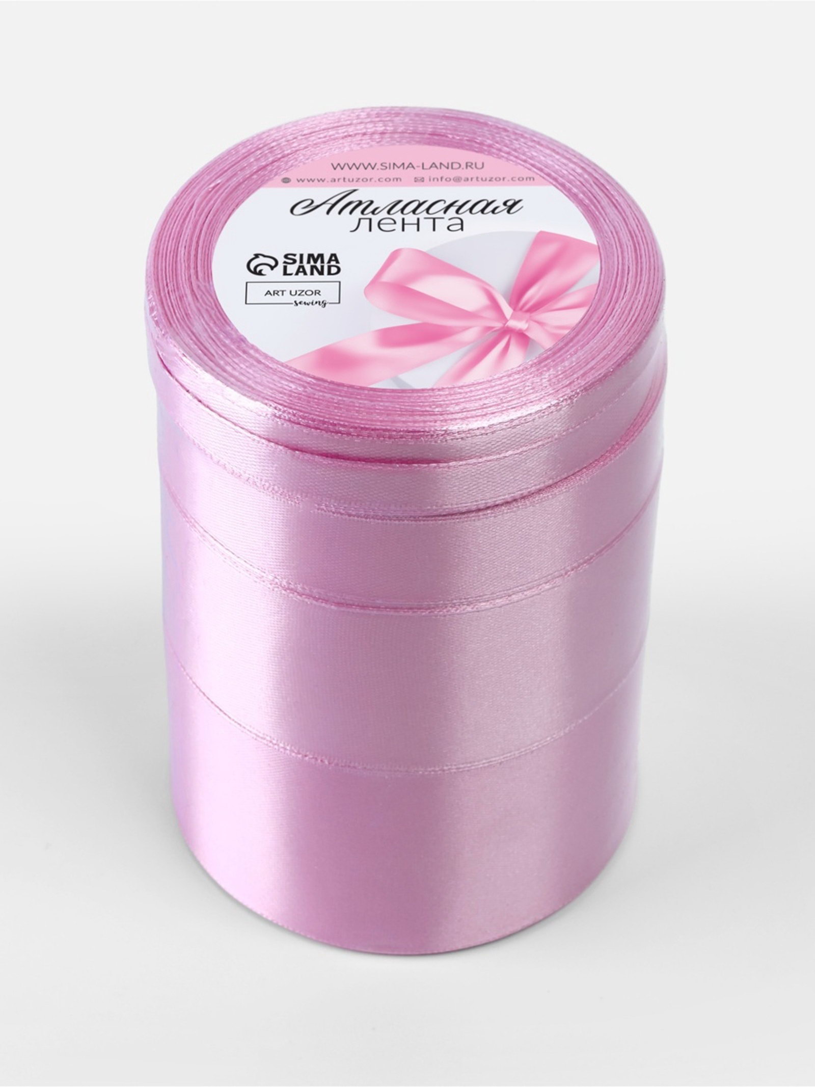 Атласная лента, набор 5 шт., 6/10/20/40/50 мм, 23+-1 м, светло-сиреневая №45, 9x9x12 см., Арт Узор, Китай