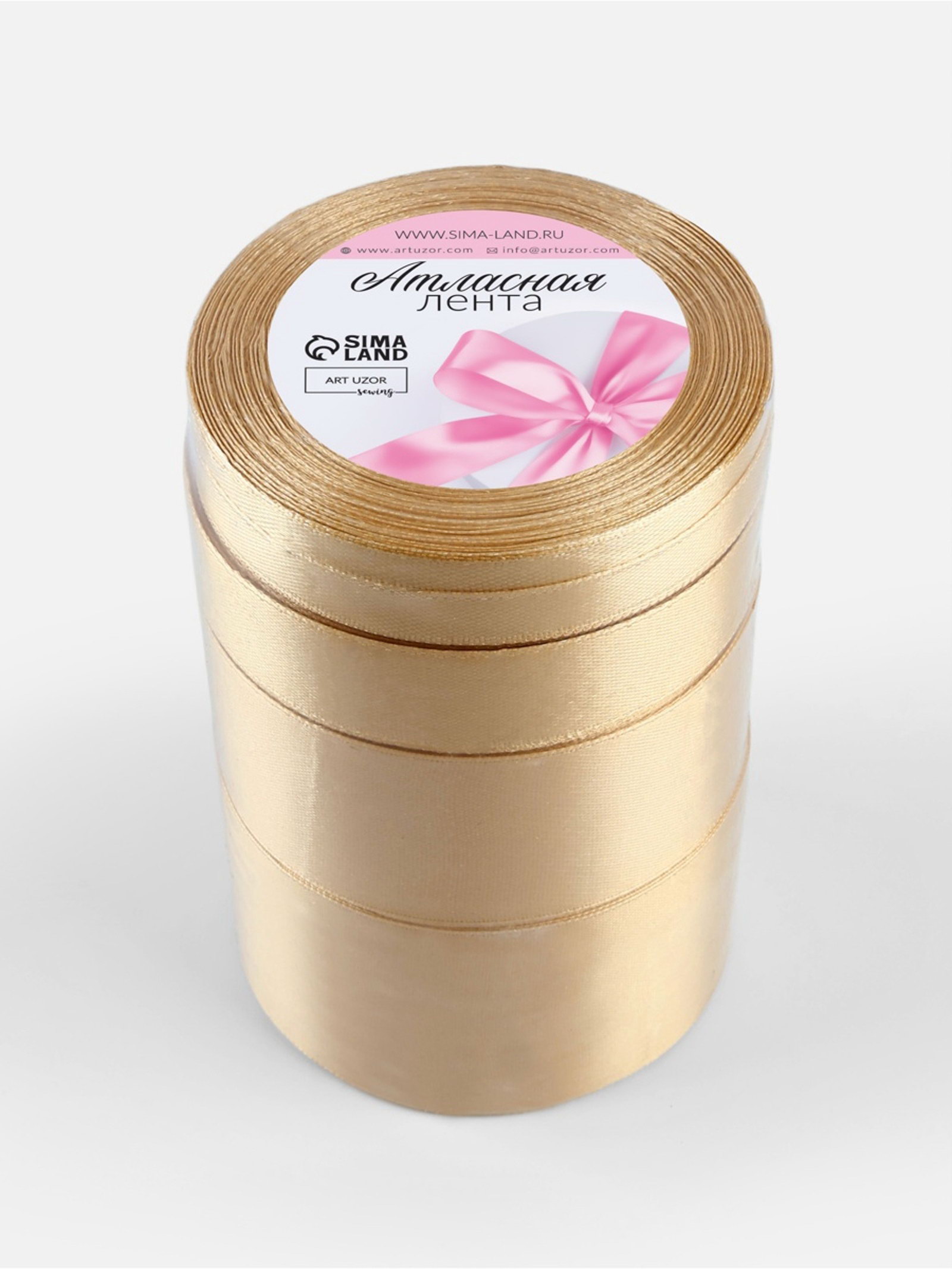 Атласная лента, набор 5 шт., 6/10/20/40/50 мм, 23+-1 м, бежевая №105, 9x9x13 см., Арт Узор, Китай