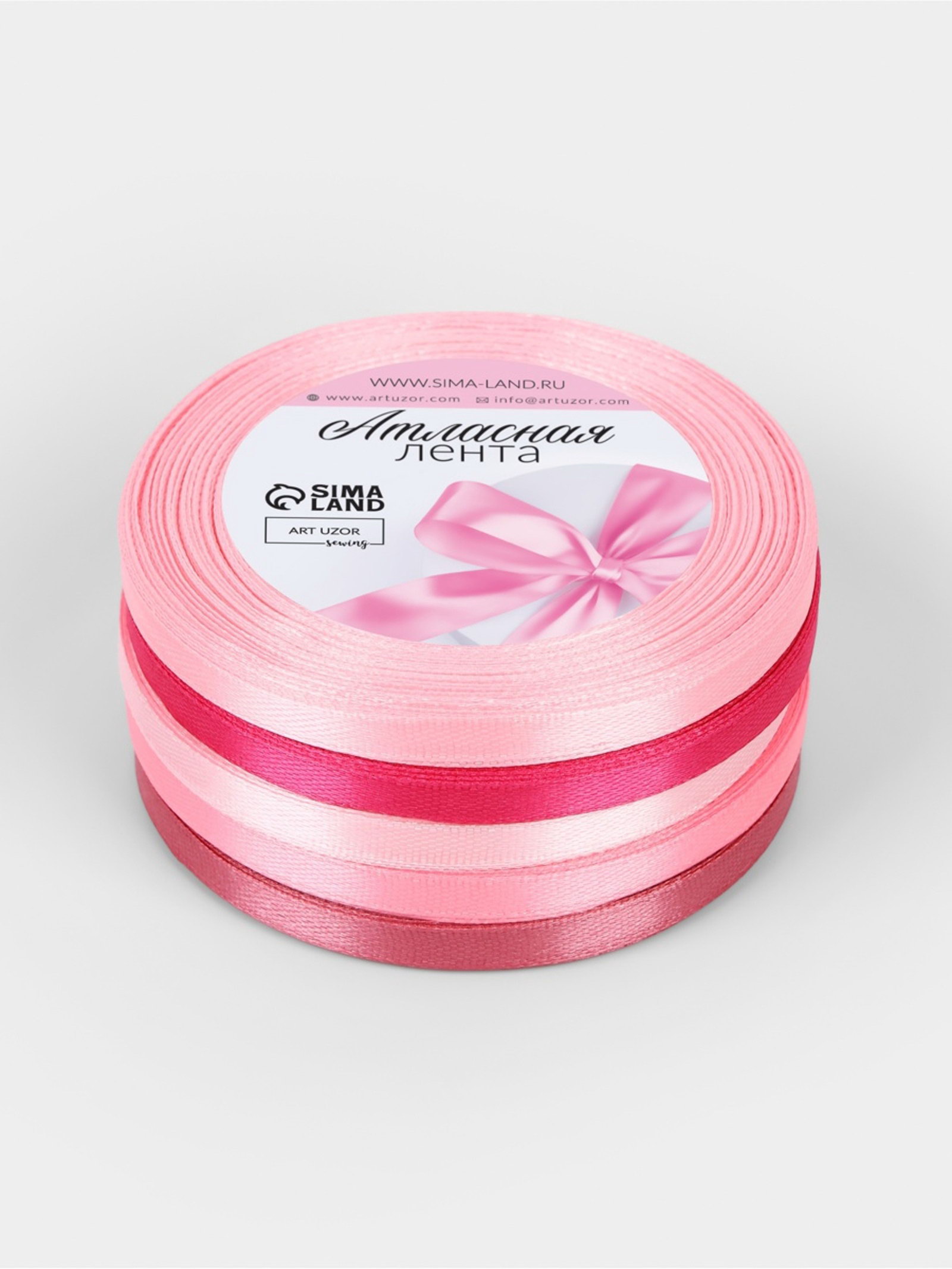 Атласная лента, набор 5 шт., 6 мм, 23+-1 м, розовая, 9x9x4 см., Арт Узор, Китай