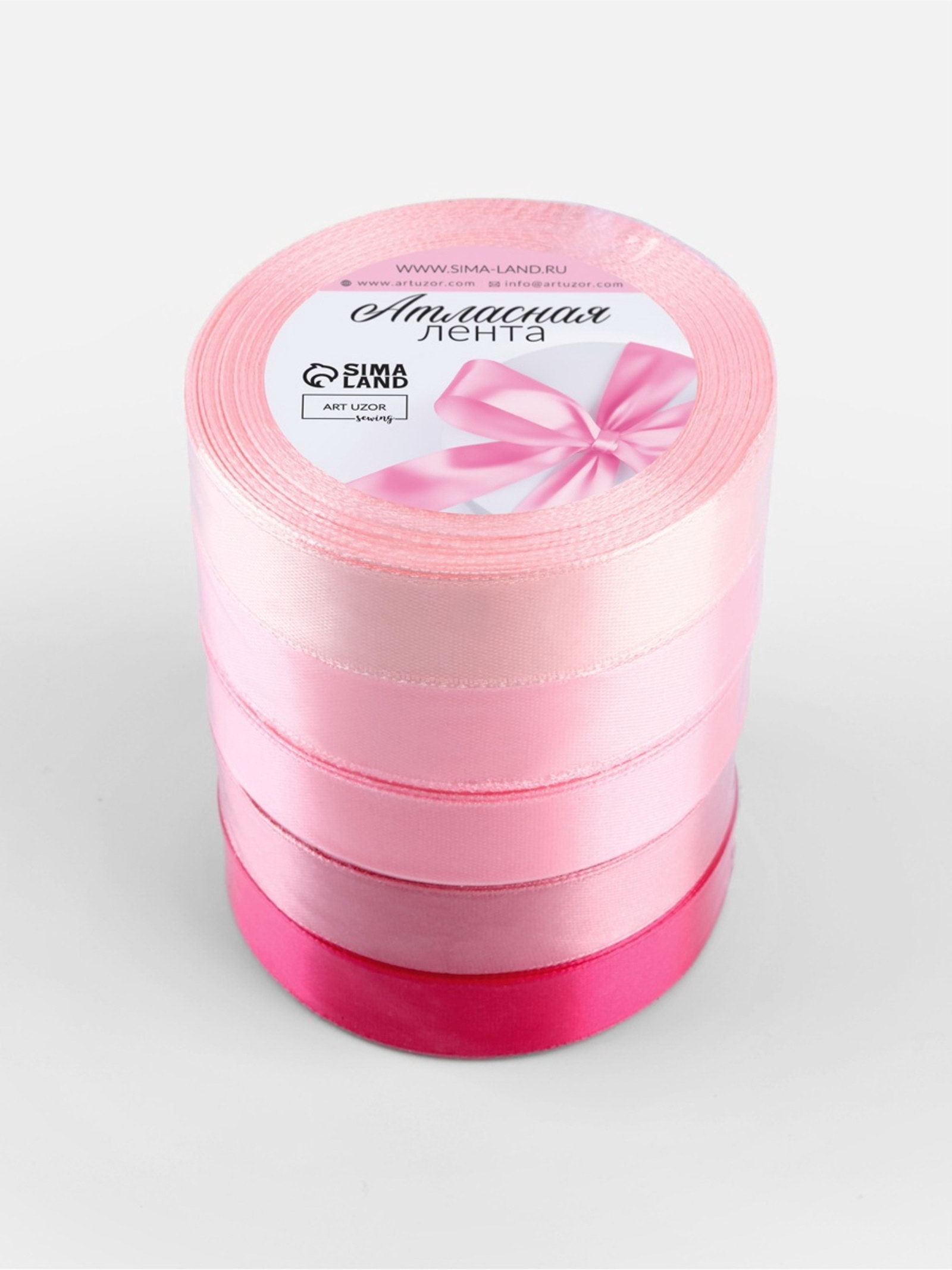 Атласная лента, набор 5 шт., 20 мм, 23+-1 м, розовая, 9x9x10 см., Арт Узор, Китай