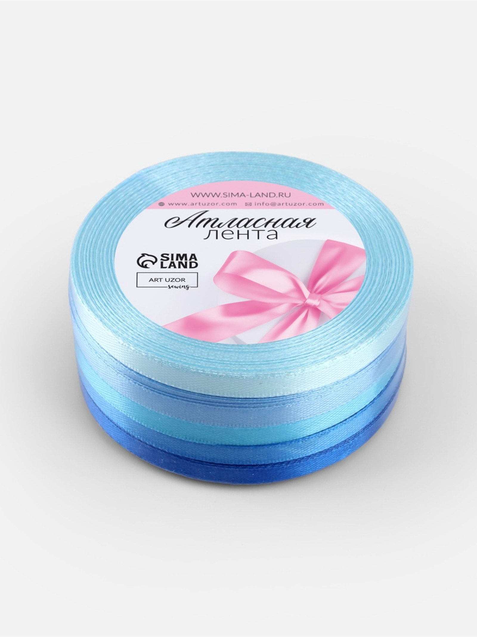 Атласная лента, набор 5 шт., 6 мм, 23+-1 м, синяя, голубая, 9x9x4 см., Арт Узор, Китай