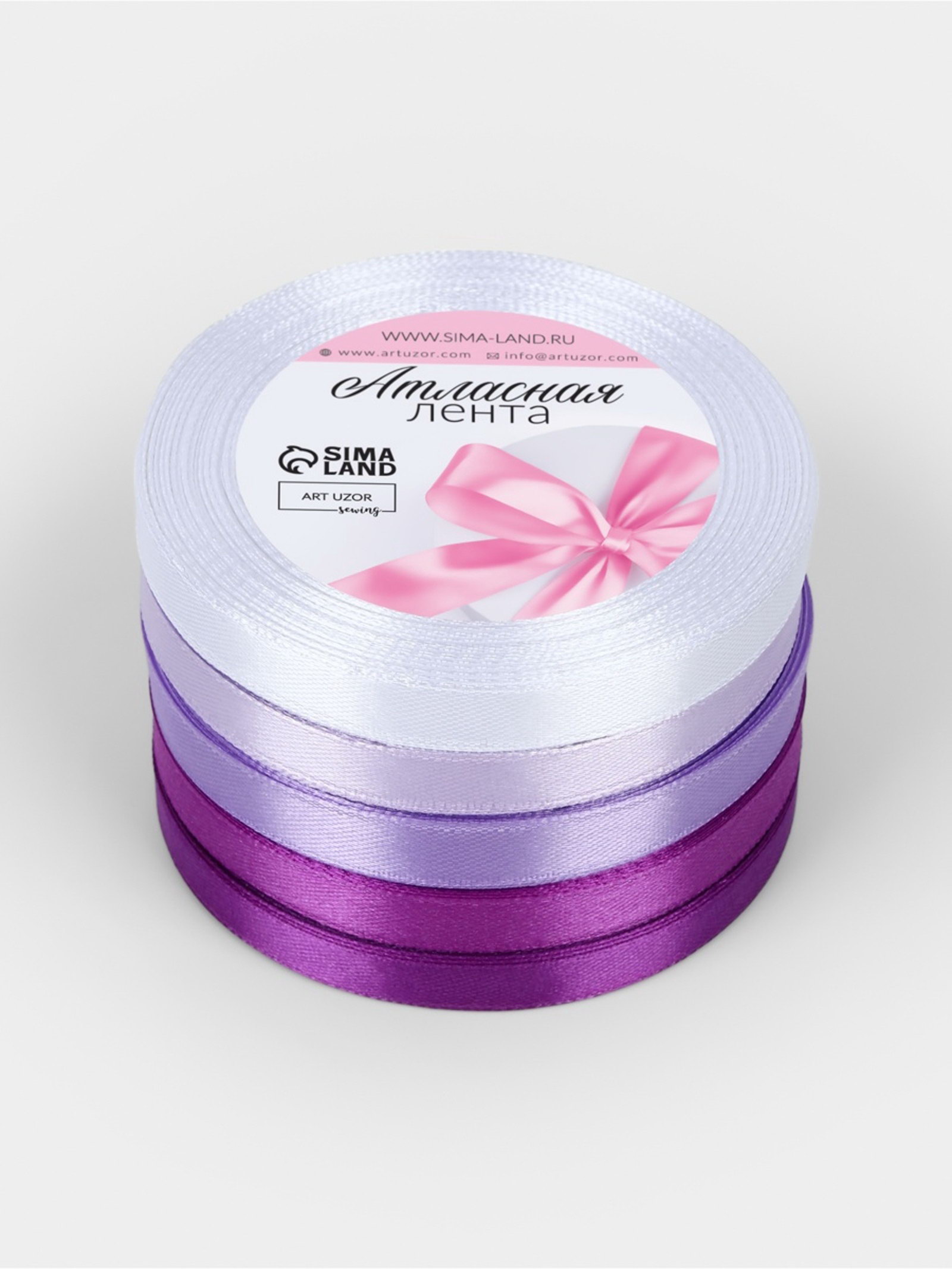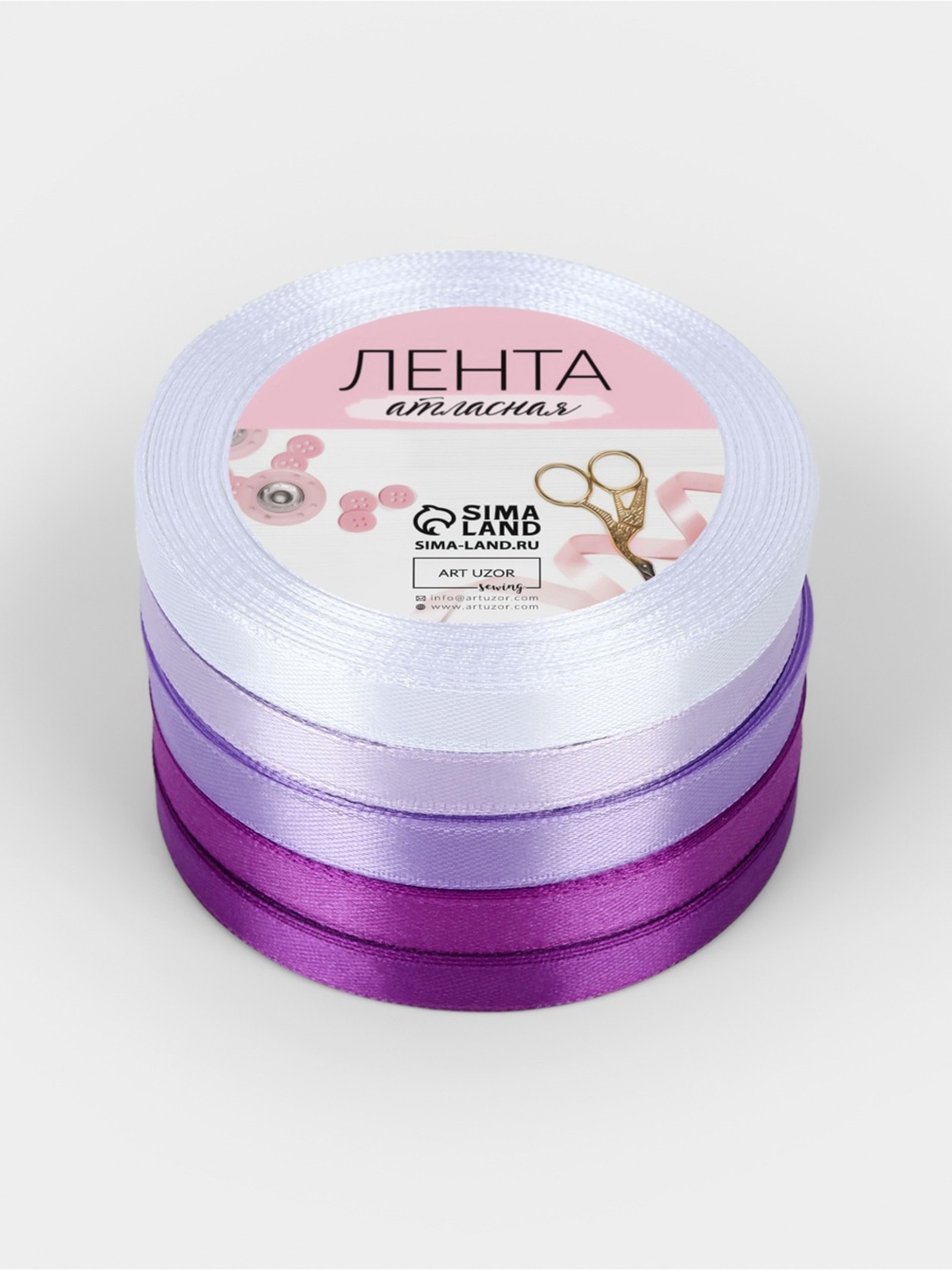Атласная лента, набор 5 шт., 10 мм, 23+-1 м, фиолетовая, сиреневая, 9x9x5 см., Арт Узор, Китай