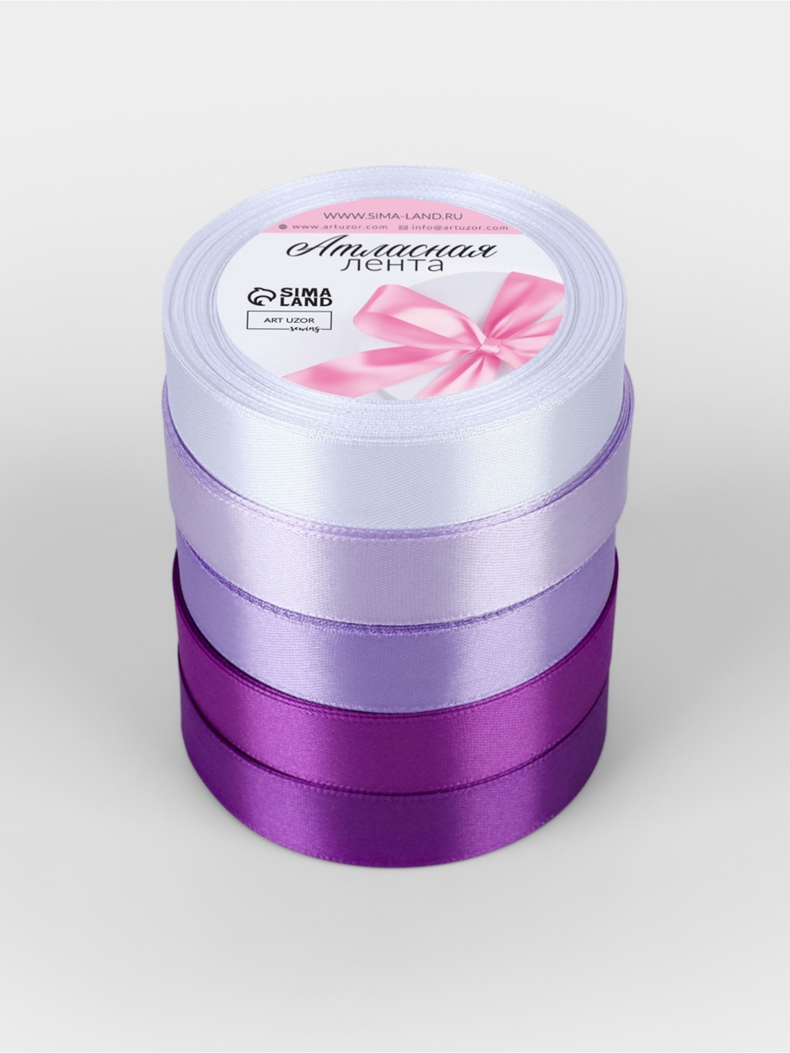 Атласная лента, набор 5 шт., 20 мм, 23+-1 м, фиолетовая, сиреневая, 9x9x10 см., Арт Узор, Китай