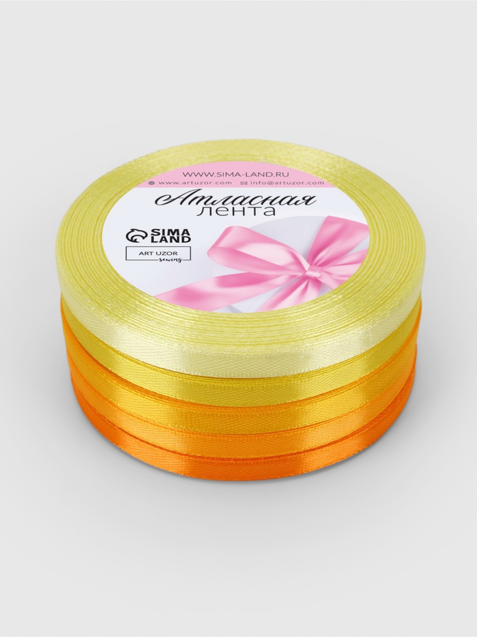 Набор атласных лент, 5 шт., 6 мм, 23+-1 м, жёлтый, оранжевый, 9x9x3 см., Арт Узор, Китай