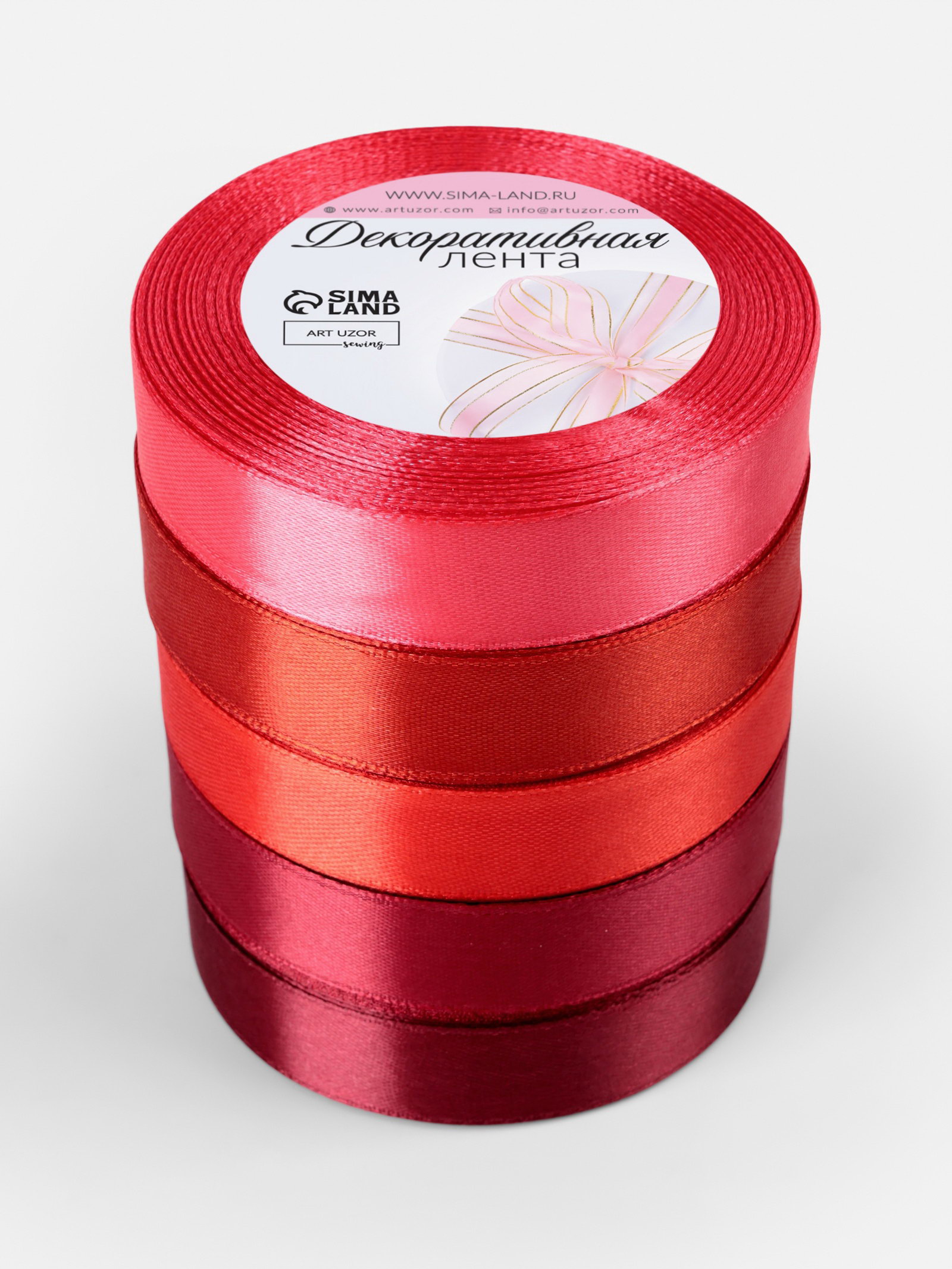Атласная лента, набор 5 шт., 20 мм, 23+-1 м, красная, бордовая, 9x9x10 см., Арт Узор, Китай