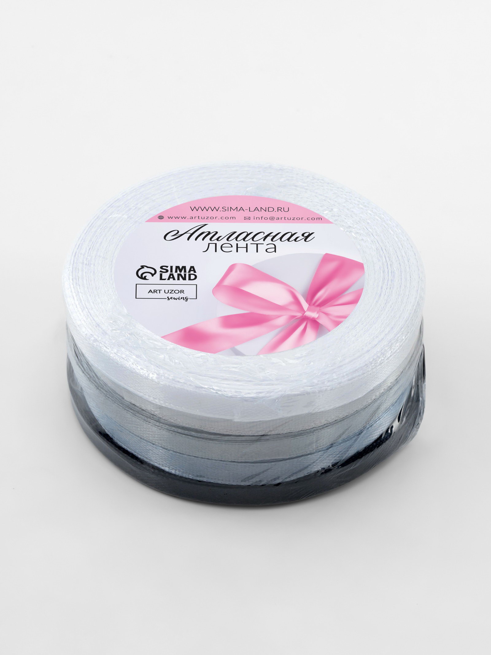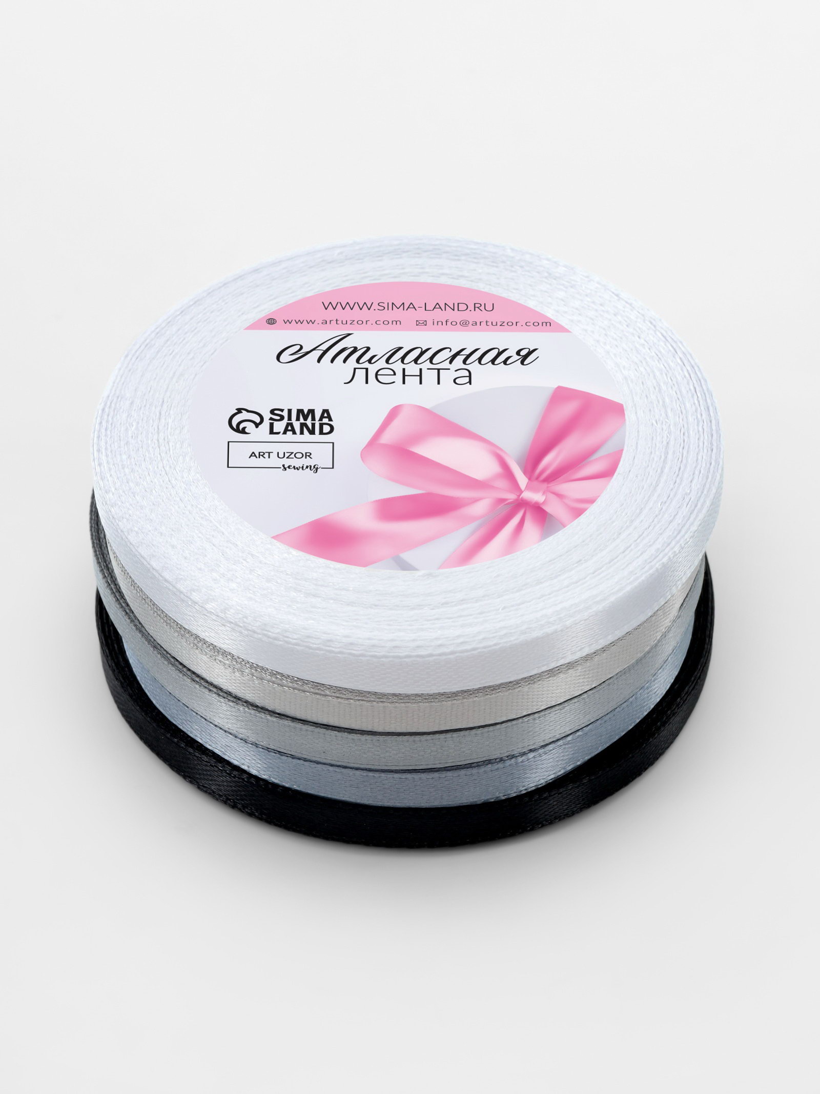 Набор атласных лент, 5 шт., размер 1 ленты: 6 мм x 23 +- 1 м, цвет серый спектр, 9x9x4 см., Арт Узор, Китай