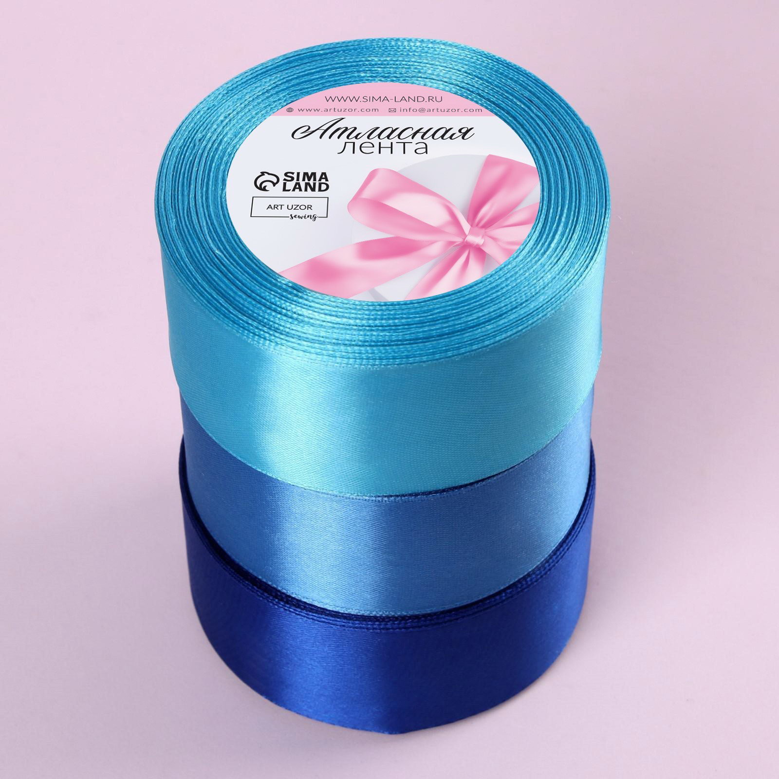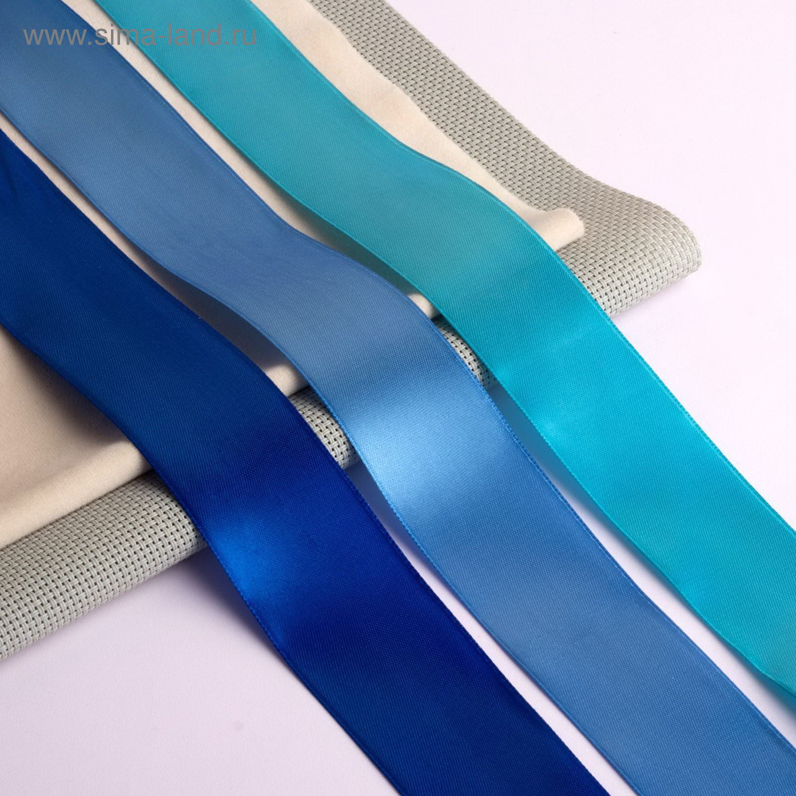 Атласная лента, набор 3 шт., 40 мм, 23+-1 м, голубая, синяя, 9x9x12 см., Арт Узор, Китай