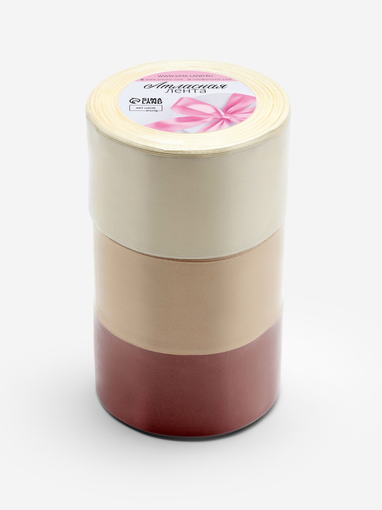 Атласная лента, набор 3 шт., 50 мм, 23+-1 м, бежевая, 9x9x15 см., Арт Узор, Китай