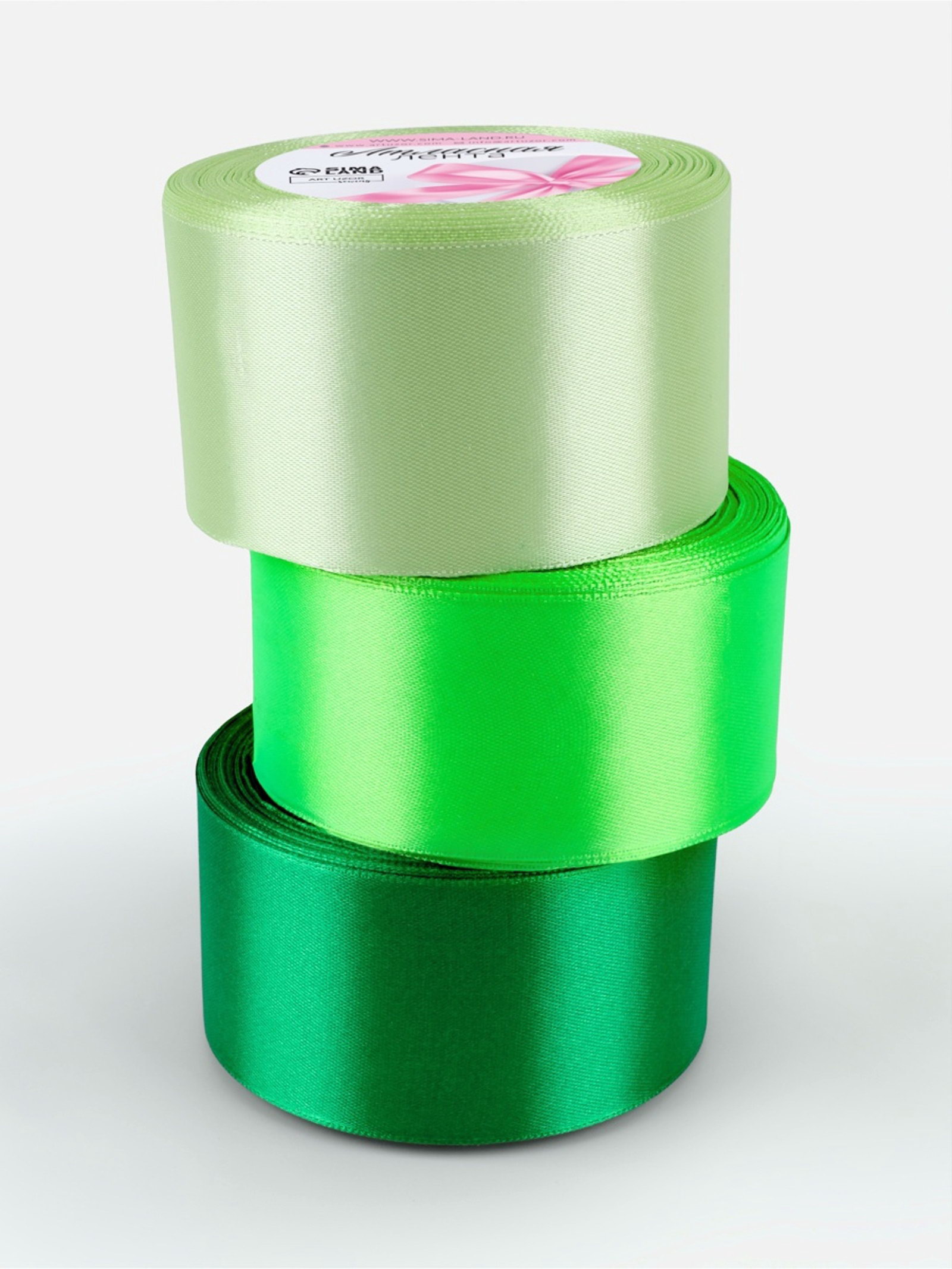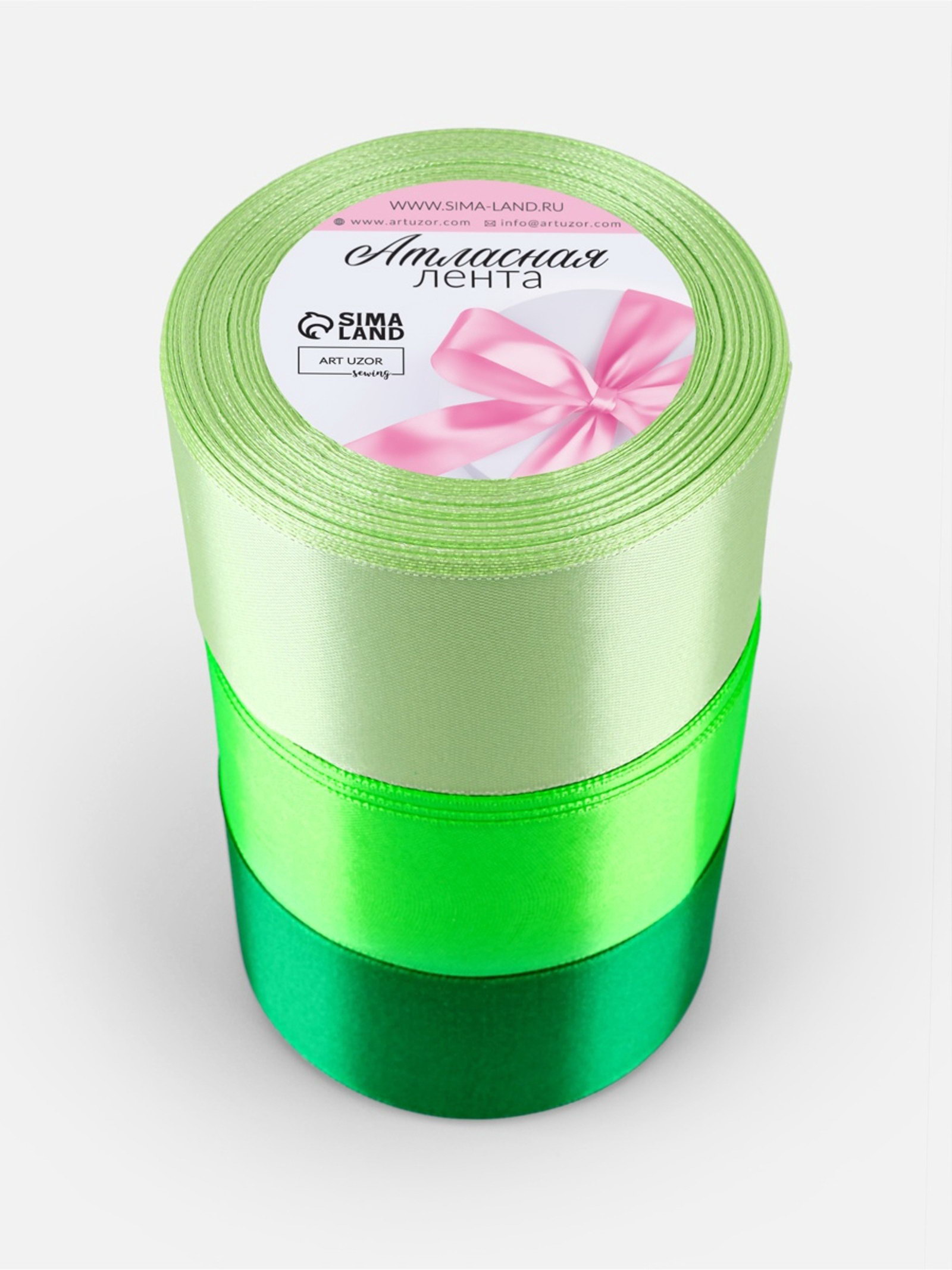Атласная лента, набор 3 шт., 50 мм, 23+-1 м, зелёная, 9x9x15 см., Арт Узор, Китай