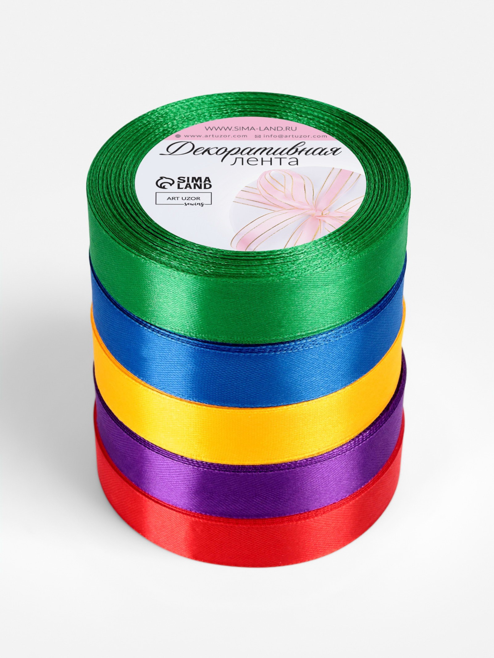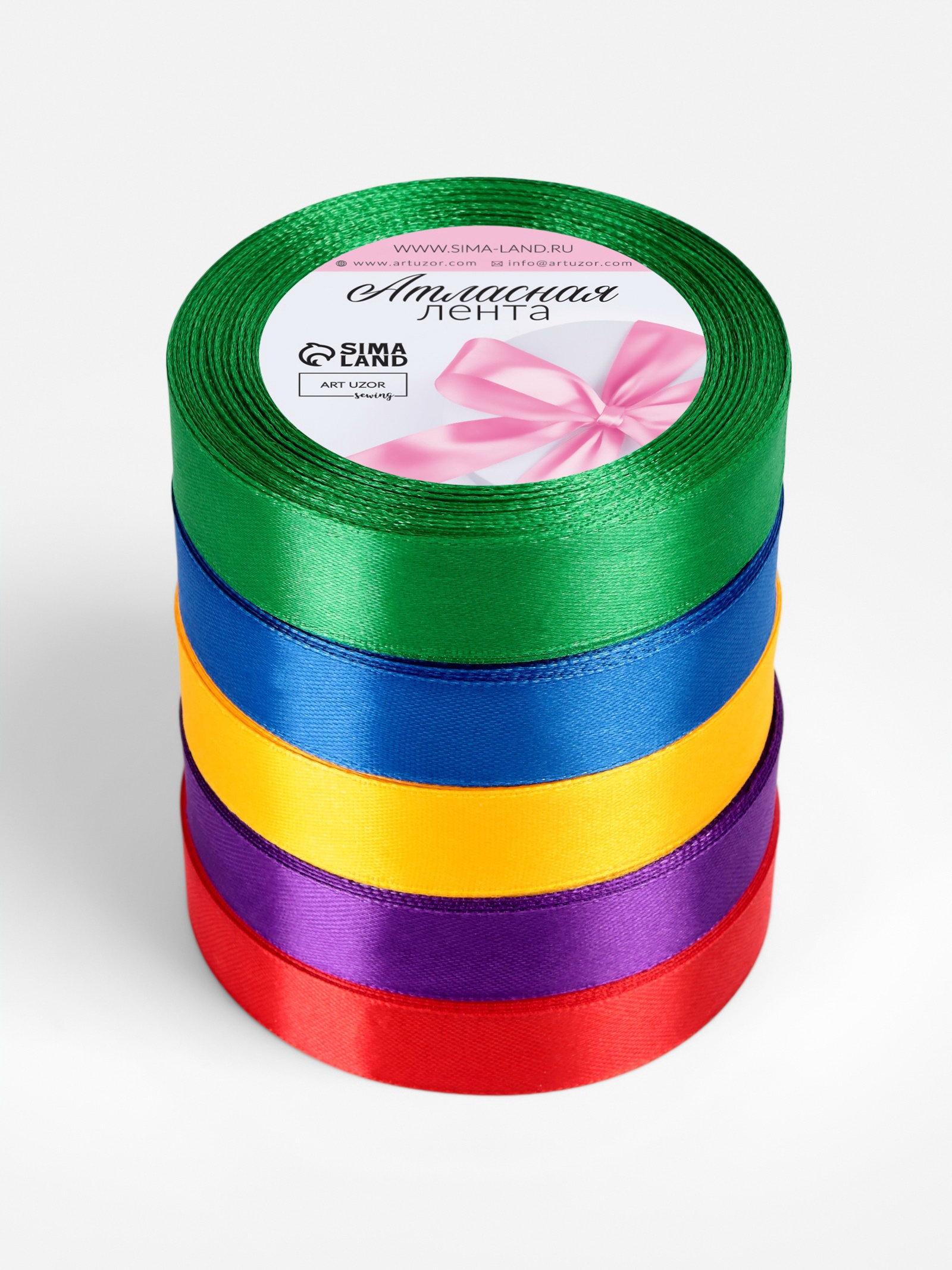 Атласная лента, набор 5 шт. "Яркость", 20 мм, 23+-1 м, 9x9x10 см., Арт Узор, Китай