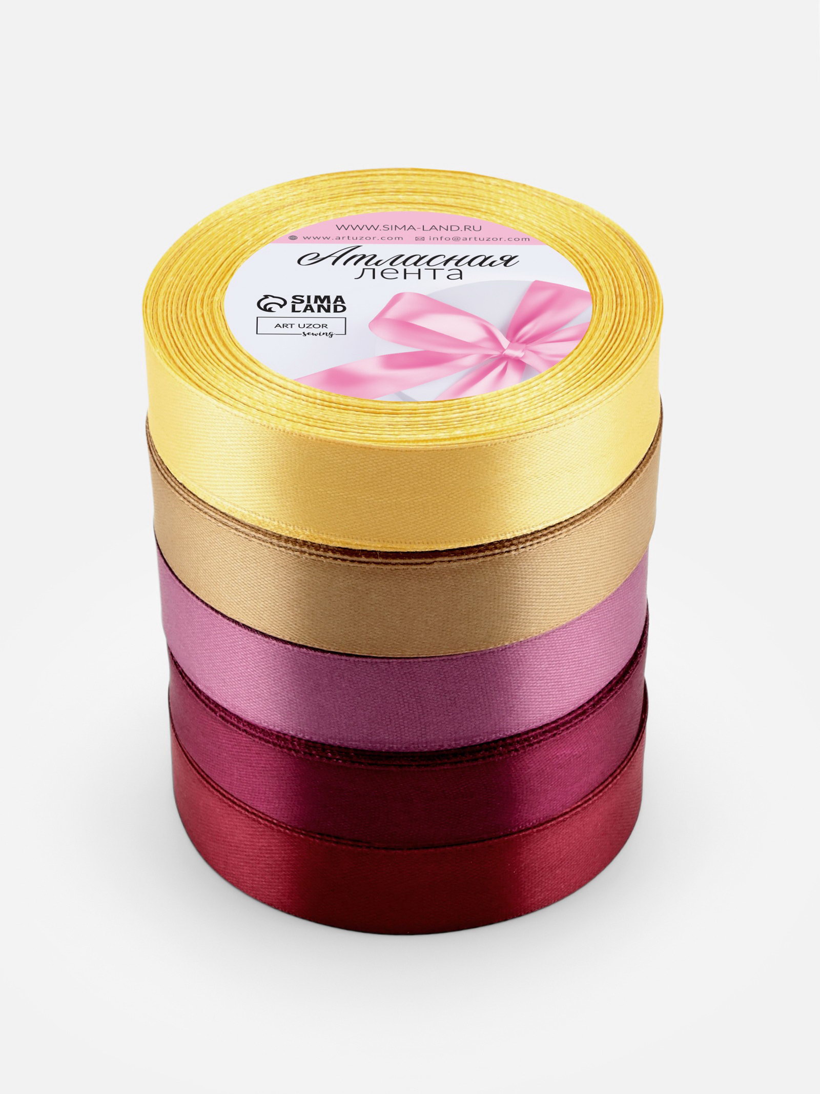 Атласная лента, набор 5 шт. "Осень", 20 мм, 23+-1 м, 9x9x10 см., Арт Узор, Китай