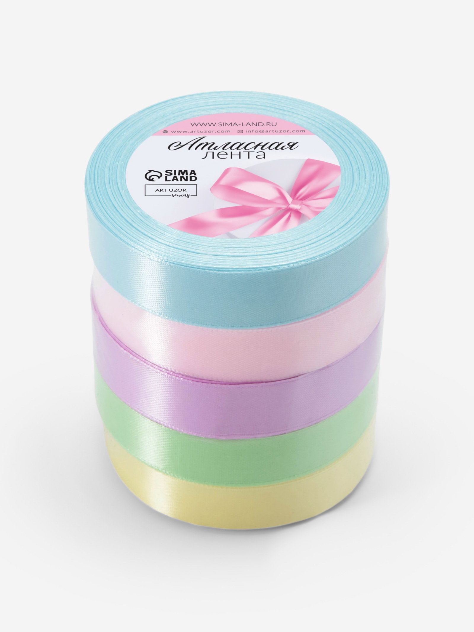 Атласная лента, набор 5 шт. "Нежный", 20 мм, 23+-1 м, 9x9x10 см., Арт Узор, Китай