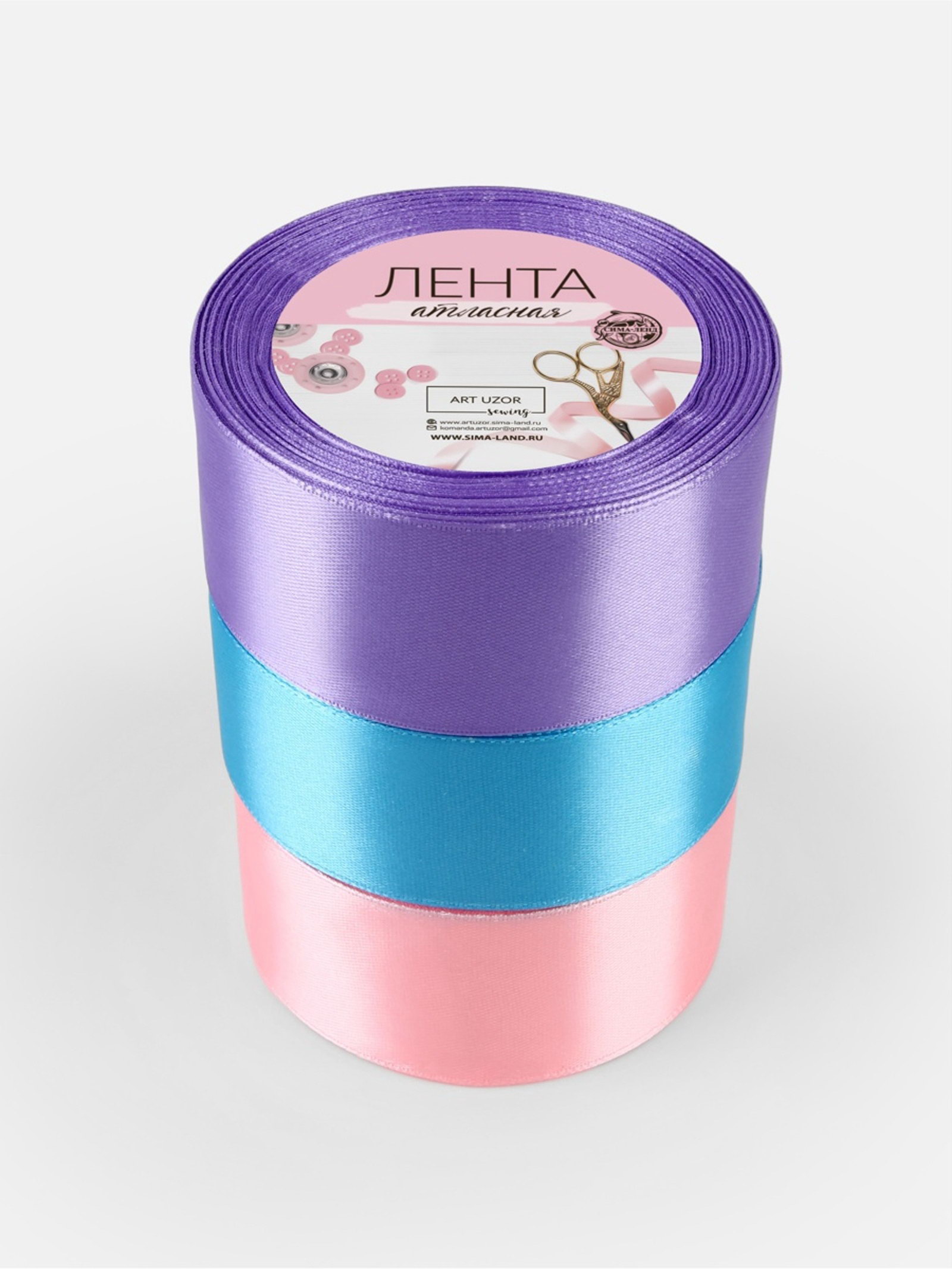 Атласная лента, набор 3 шт. "Ариэль", 40 мм, 23+-1 м, 9x9x12 см., Арт Узор, Китай