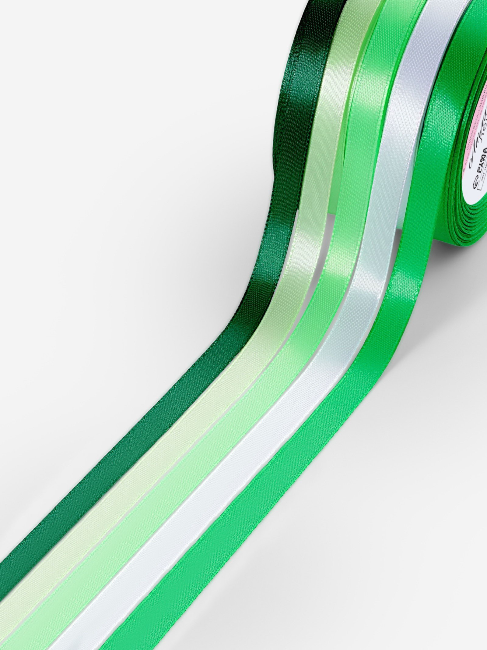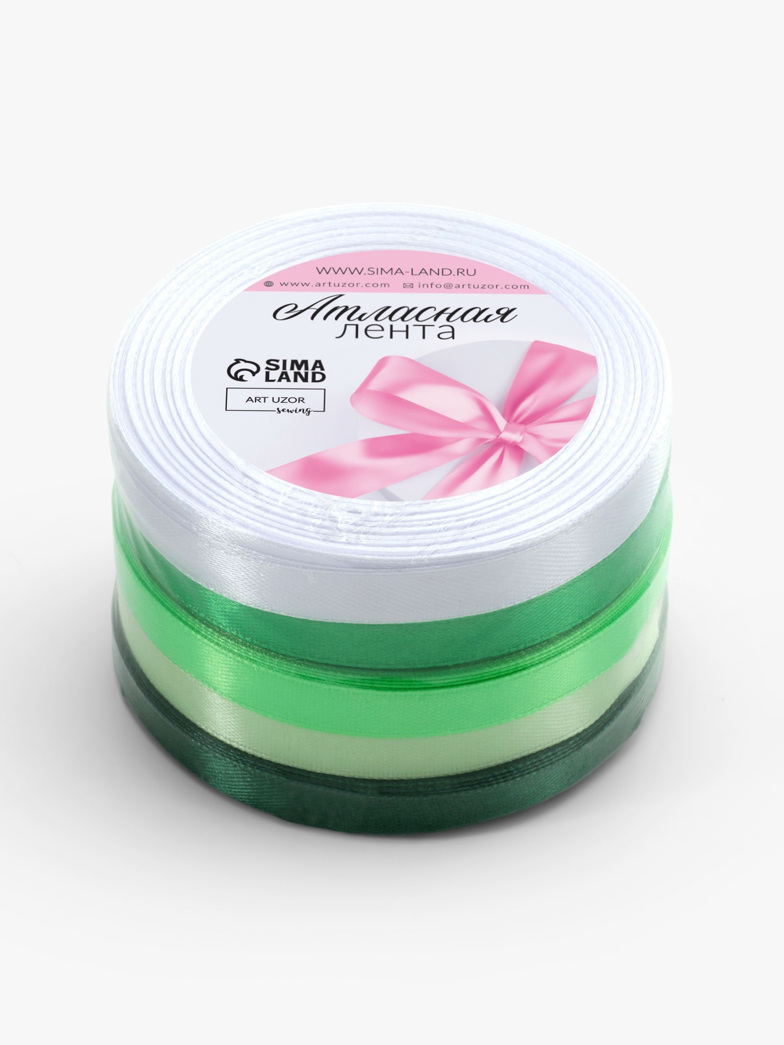 Атласная лента, набор 5 шт., 10 мм, 23+-1 м, белая, зелёная, 9x9x5 см., Арт Узор, Китай