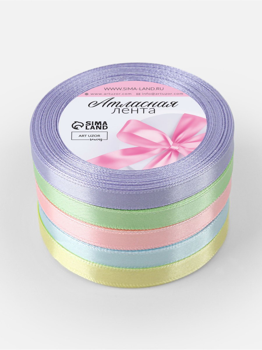 Атласная лента, набор 5 шт. "Пастельный", 10 мм, 23+-1 м, 9x9x5 см., Арт Узор, Китай