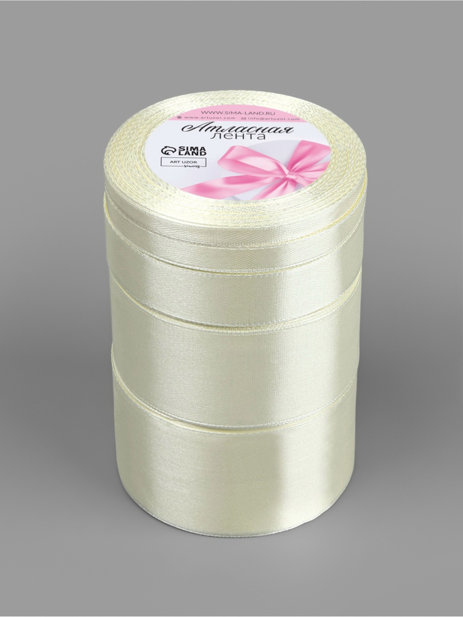 Атласная лента, набор 5 шт., 6/10/20/40/50 мм, 23+-1 м, сливочная №02, 9x9x12 см., Арт Узор, Китай