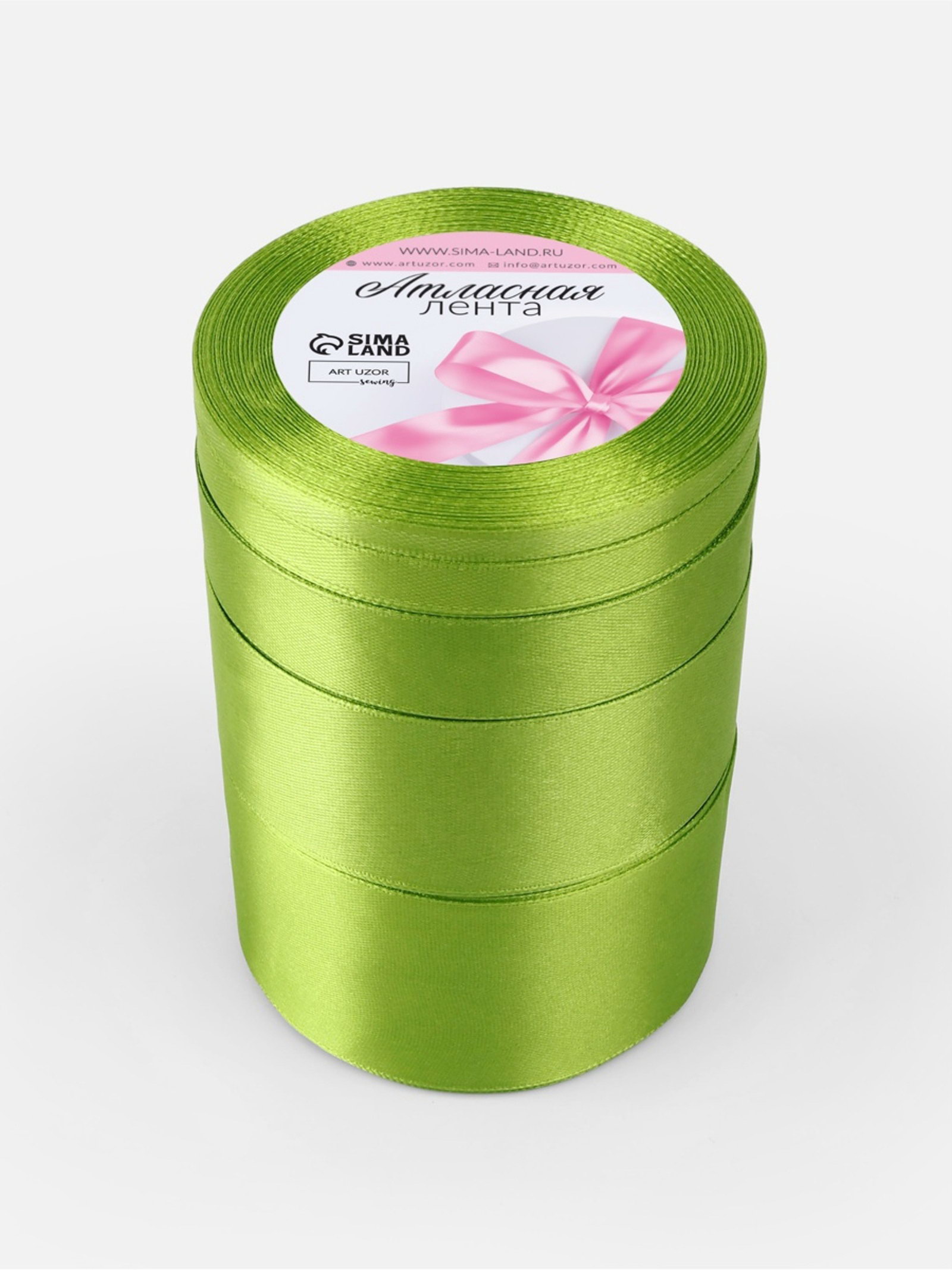 Атласная лента, набор 5 шт., 6/10/20/40/50 мм, 23+-1 м, светло-зелёная №184, 9x9x13 см., Арт Узор, Китай