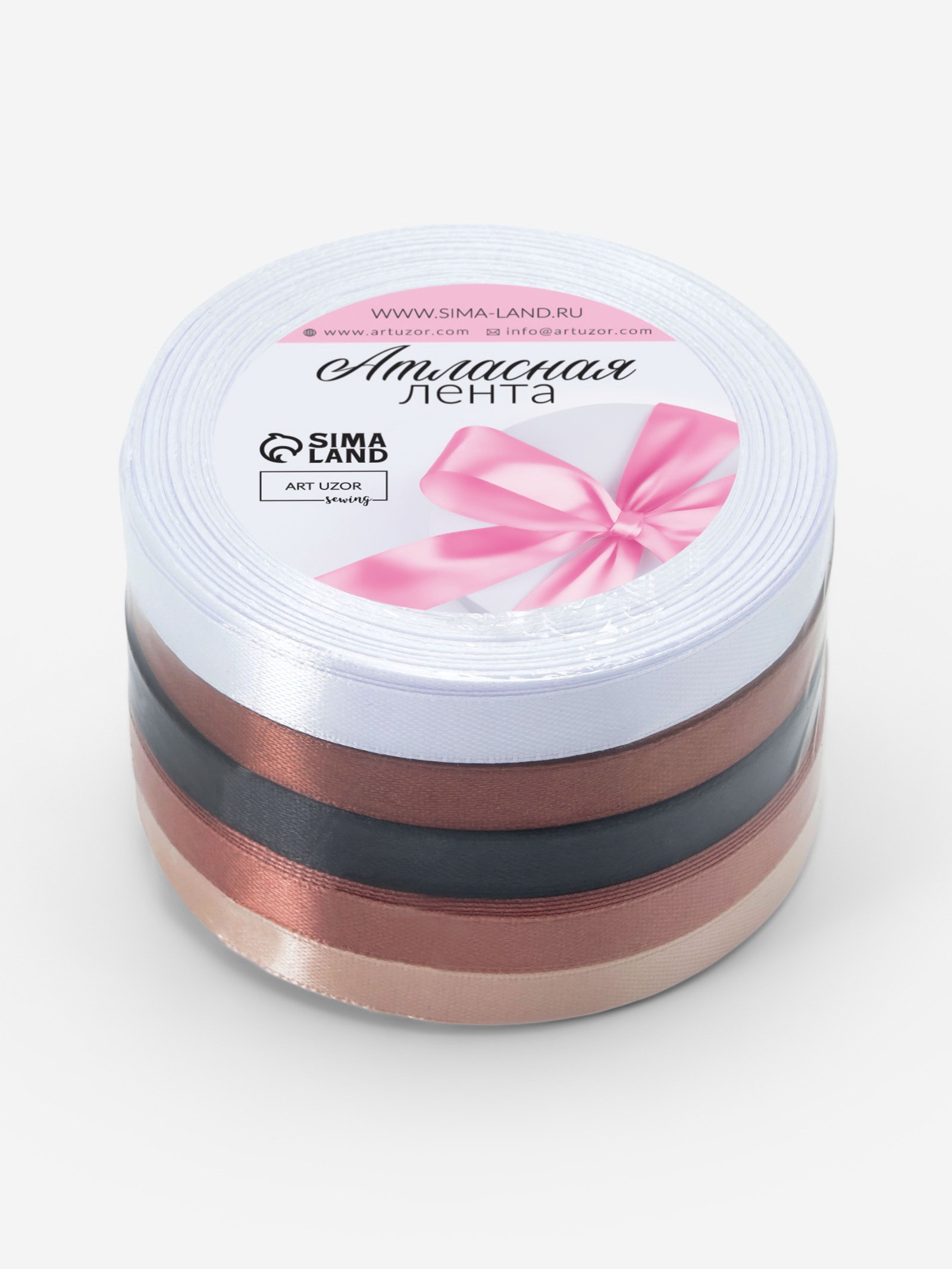 Атласная лента, набор 5 шт. "Уютный", 10 мм, 23+-1 м, 9x9x5 см., Арт Узор, Китай