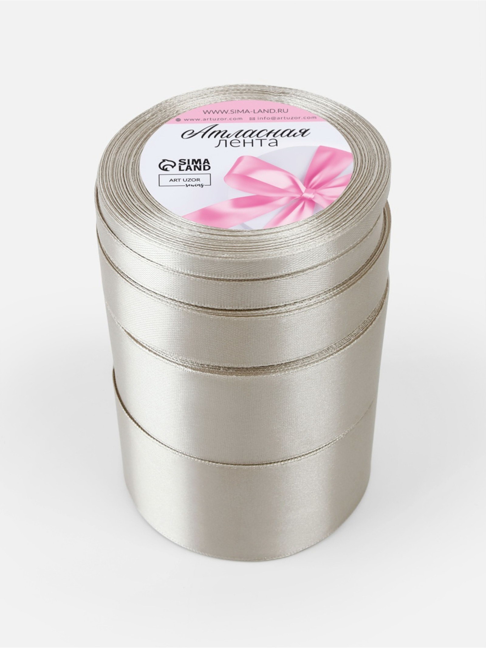 Атласная лента, набор 5 шт., 6/10/20/40/50 мм, 23+-1 м, светло-серая №179, 9x9x13 см., Арт Узор, Китай