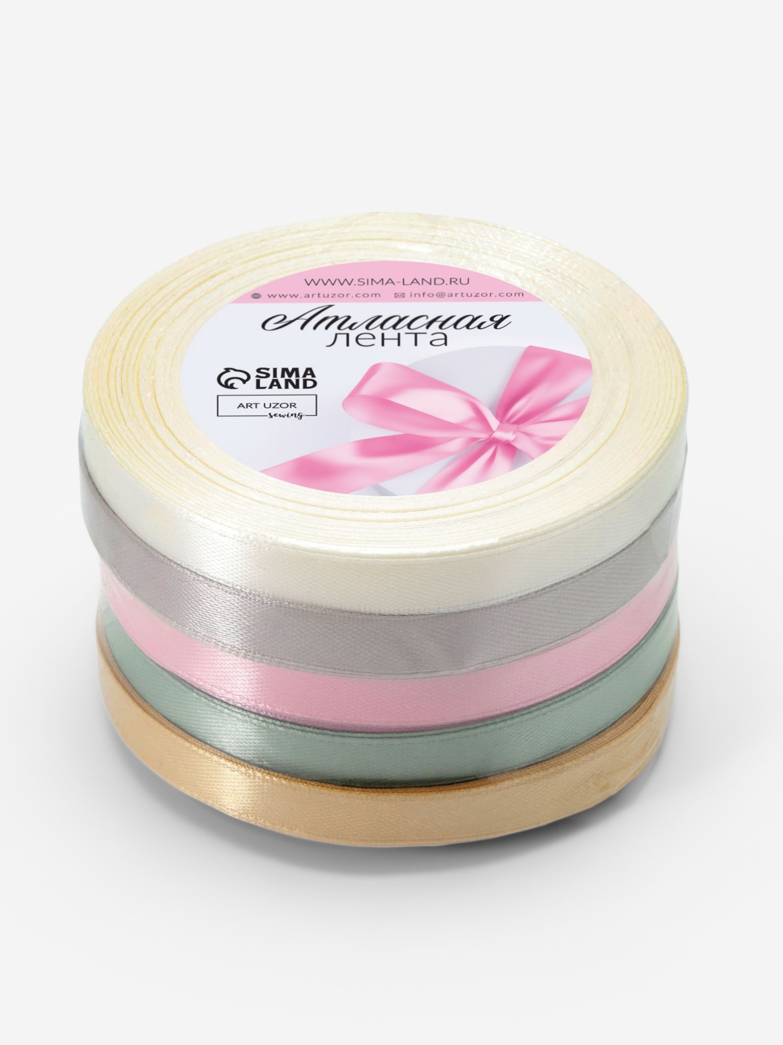 Атласная лента, набор 5 шт. "Тёплый день", 10 мм, 23+-1 м, 9x9x5 см., Арт Узор, Китай