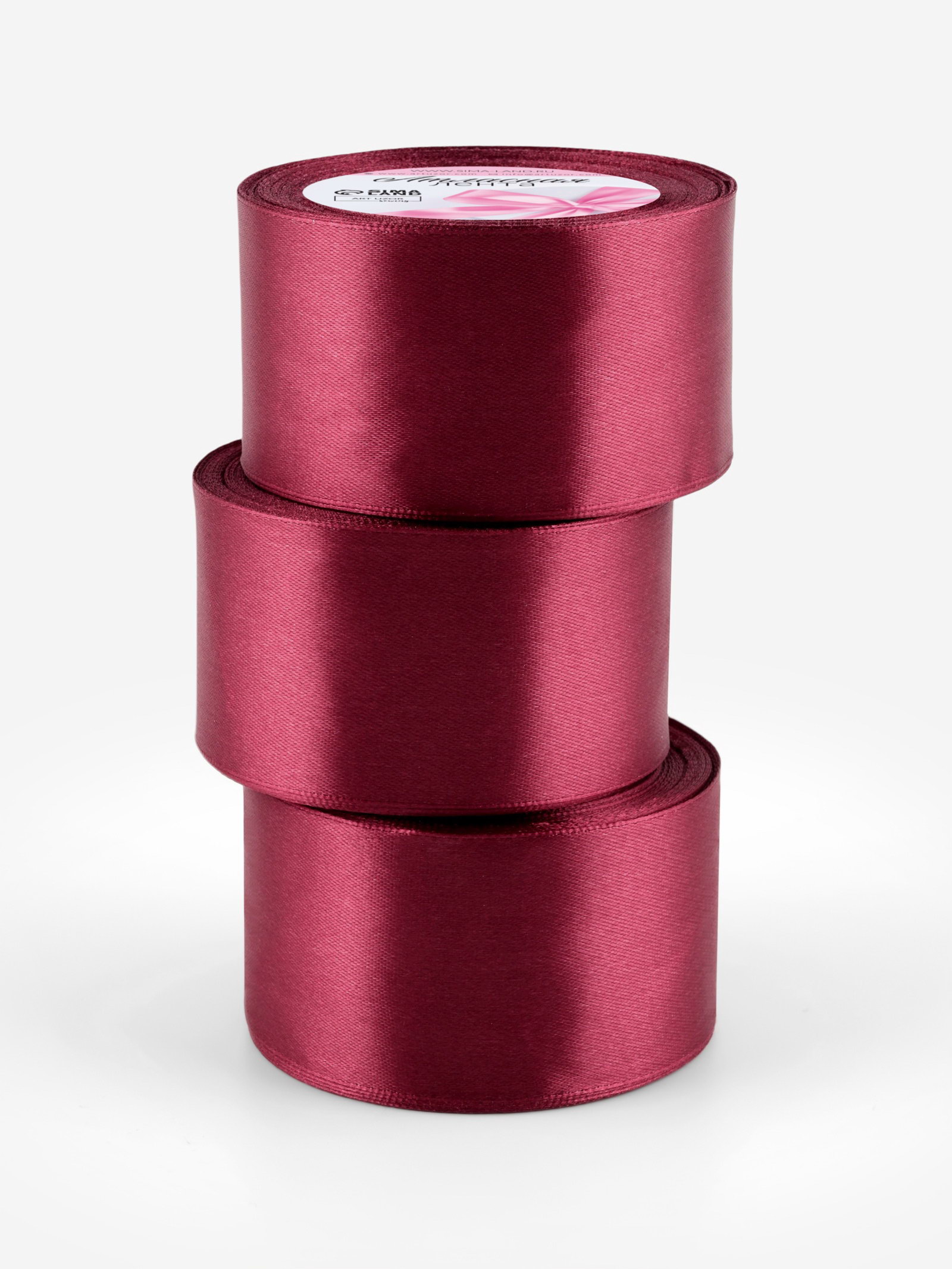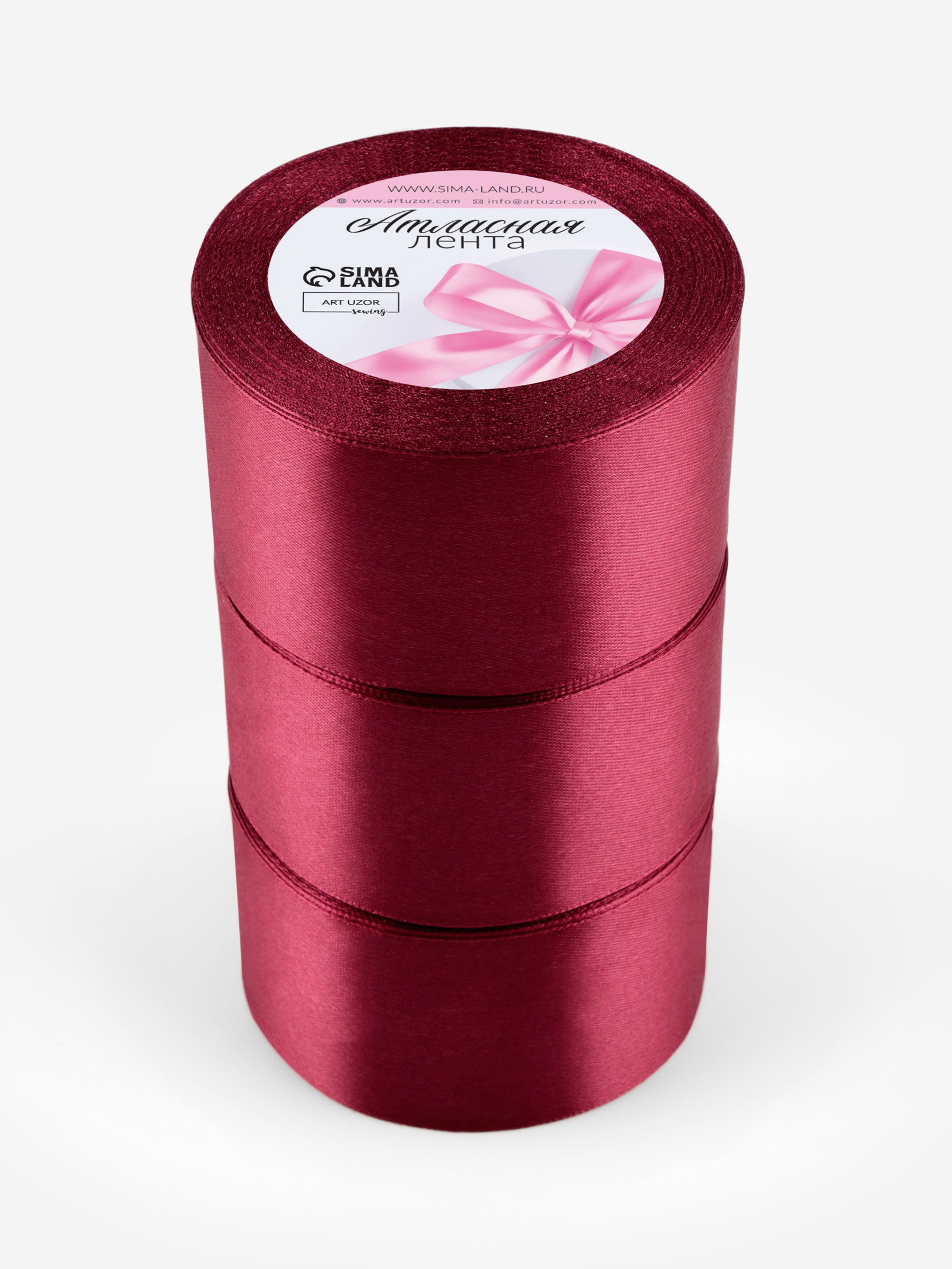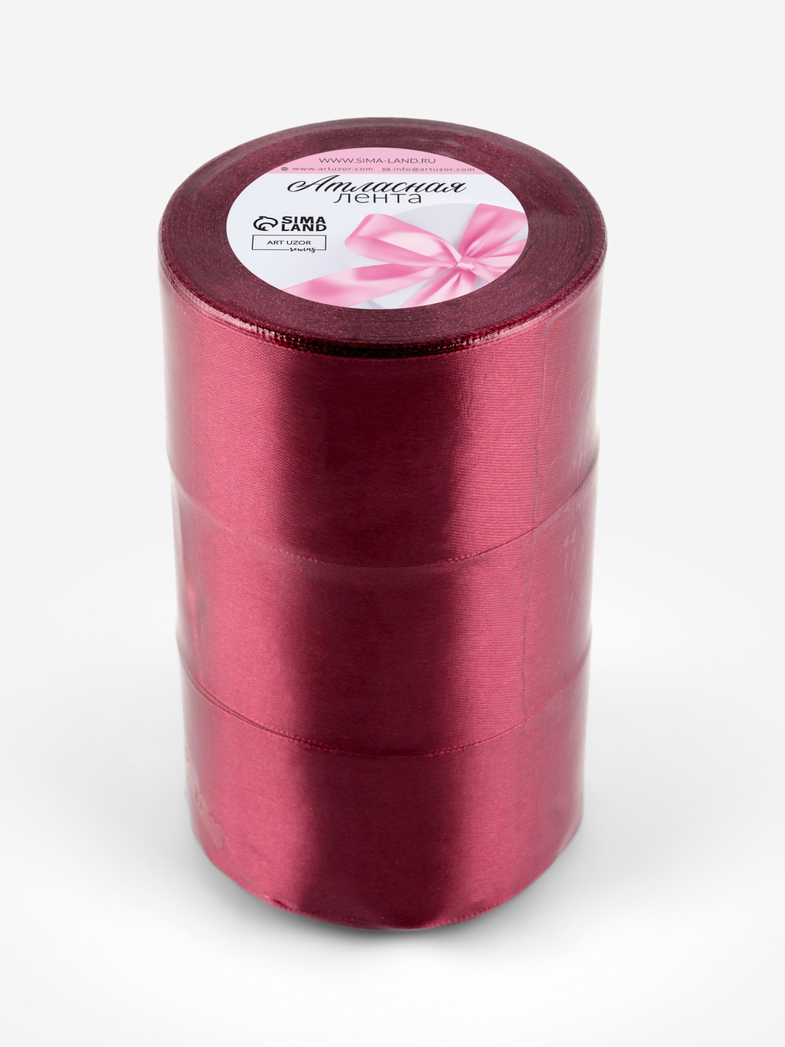 Атласная лента, набор 3 шт., 50 мм, 23+-1 м, бордовая №48, 9x9x15 см., Арт Узор, Китай
