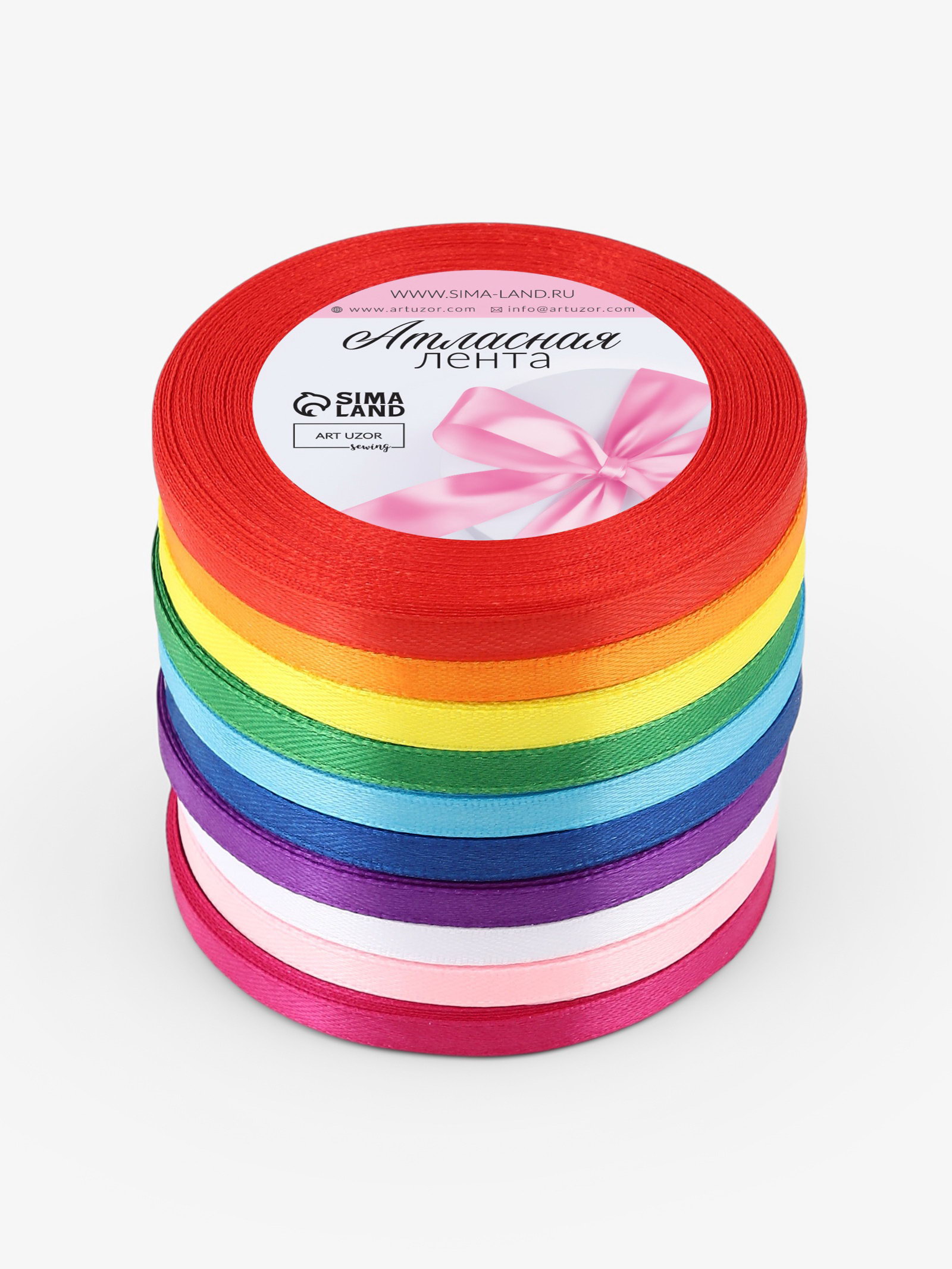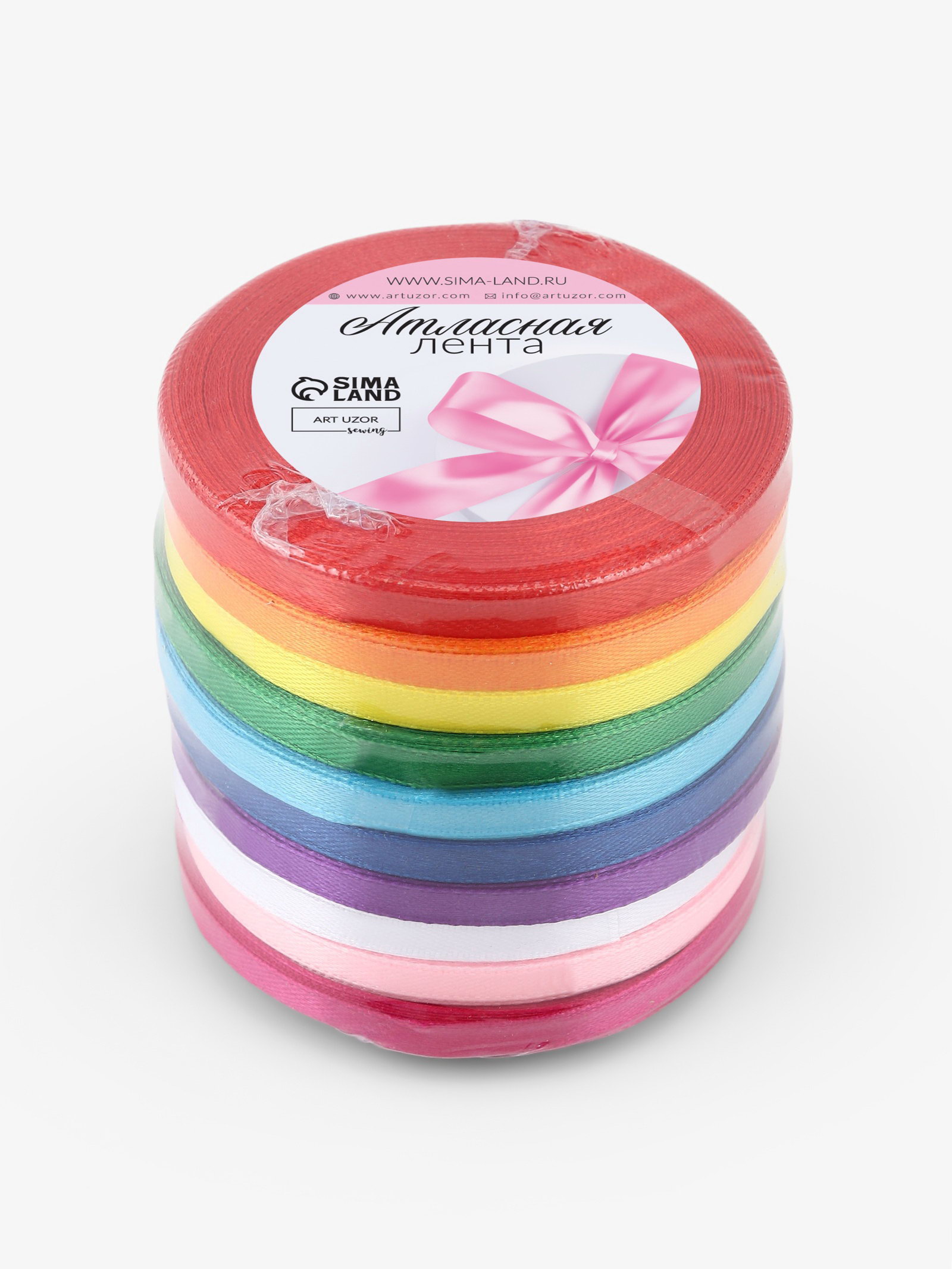 Лента атласная, набор 10 шт., 6 мм, 23 м+-1 м, разноцветная, 9x9x6 см., Арт Узор, Китай