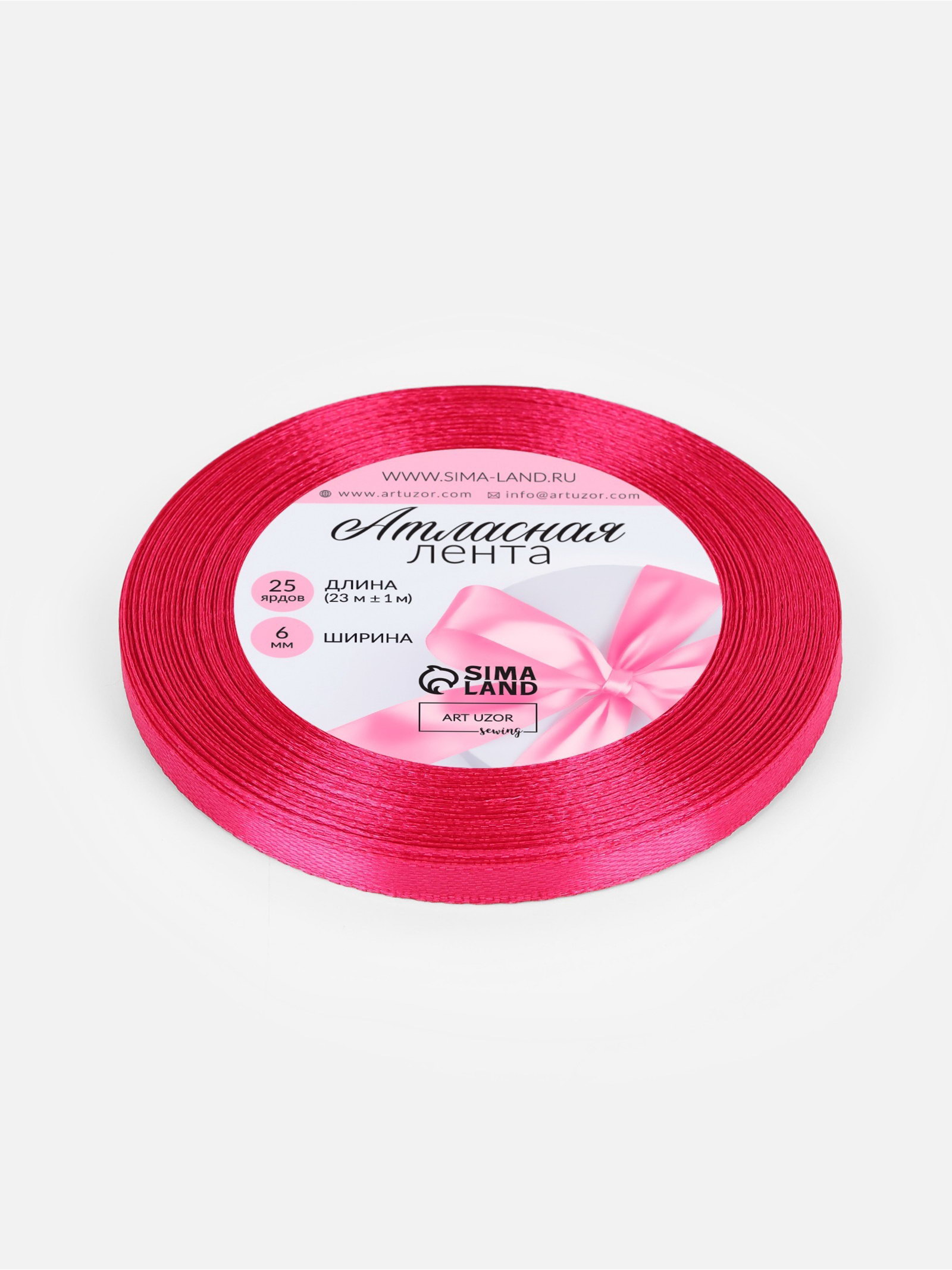 Лента атласная, 6 мм, 23+-1 м, ярко-розовая, 9x9x0.6 см., Арт Узор, Китай