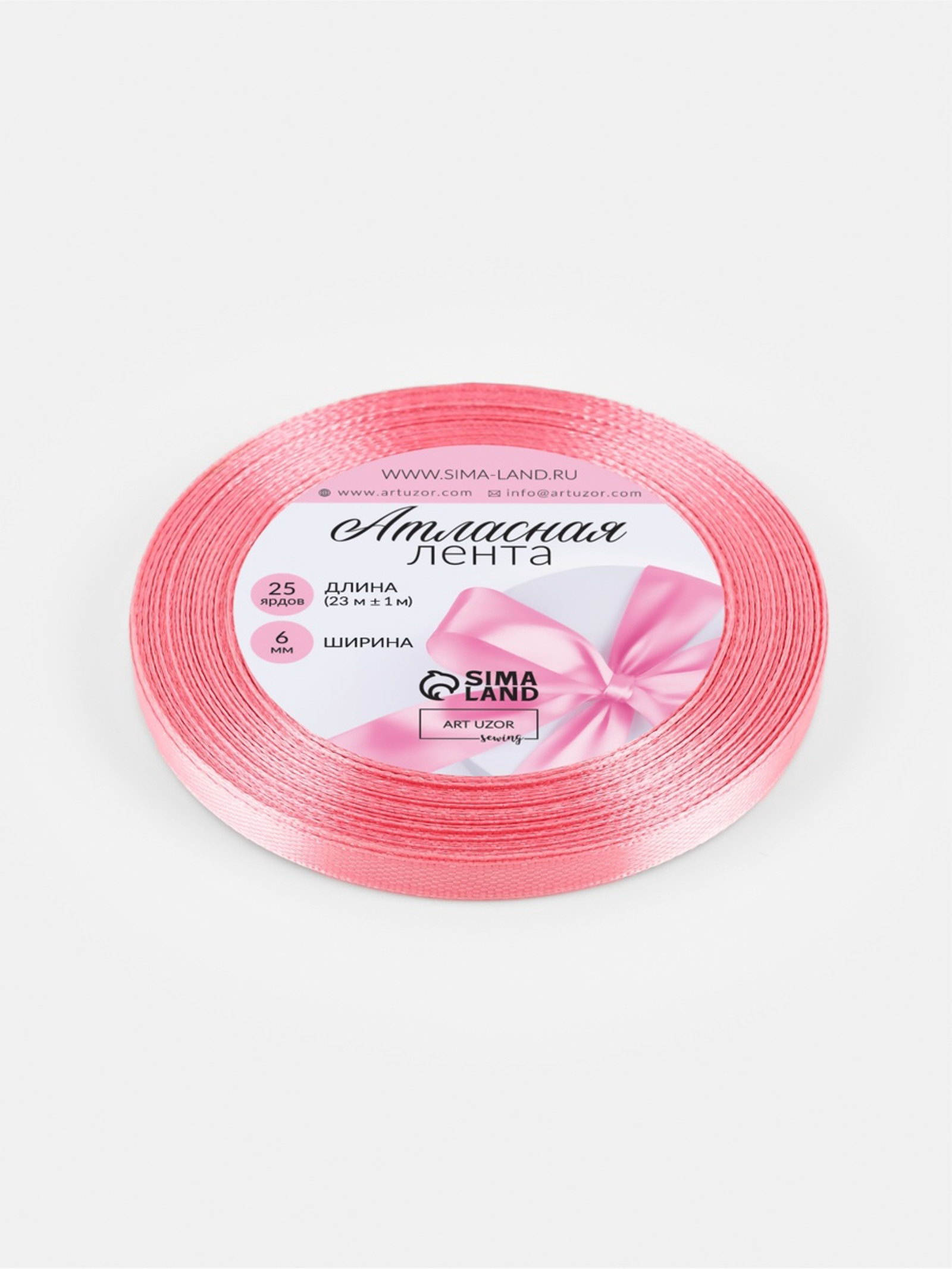 Лента атласная, 6 мм, 23+-1 м, пурпурно-розовая №170, 9x9x0.6 см., Арт Узор, Китай
