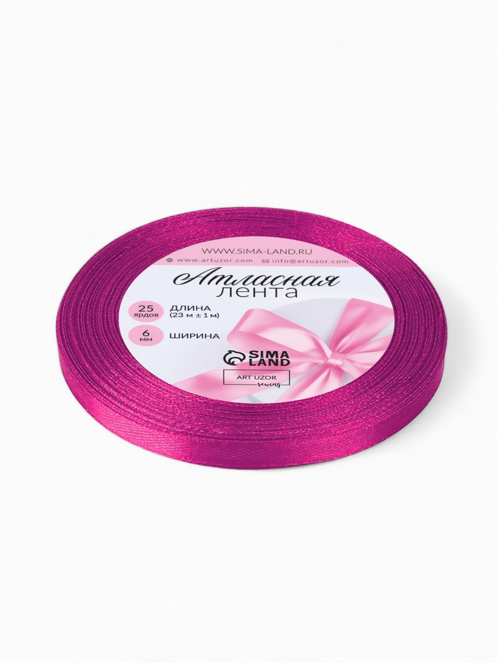 Лента атласная, 6 мм, 23+-1 м, пурпурно-фиолетовая №29, 9x9x0.6 см., Арт Узор, Китай