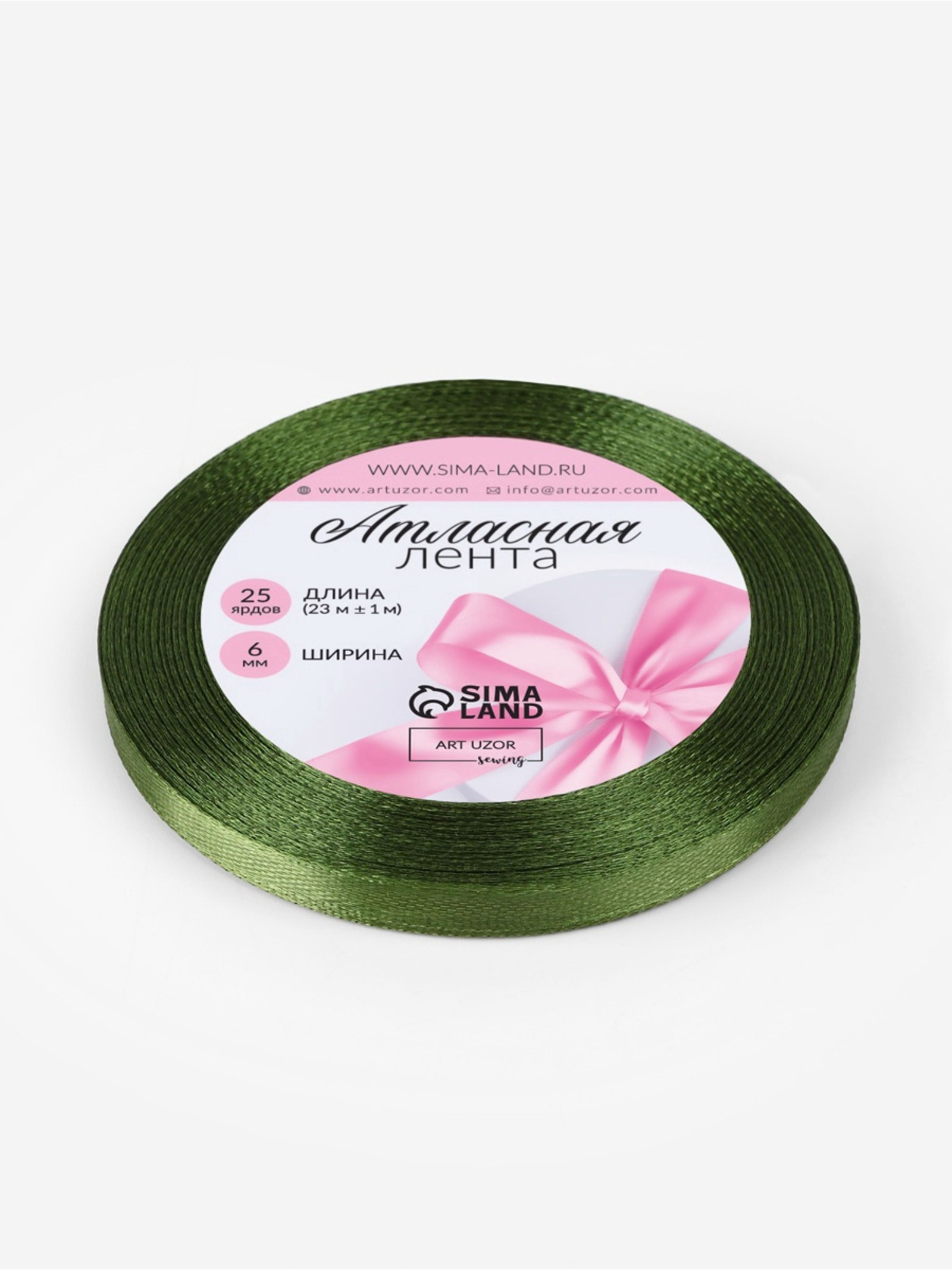 Лента атласная, 6 мм, 23+-1 м, насыщенно-зелёная №113, 9x9x0.6 см., Арт Узор, Китай