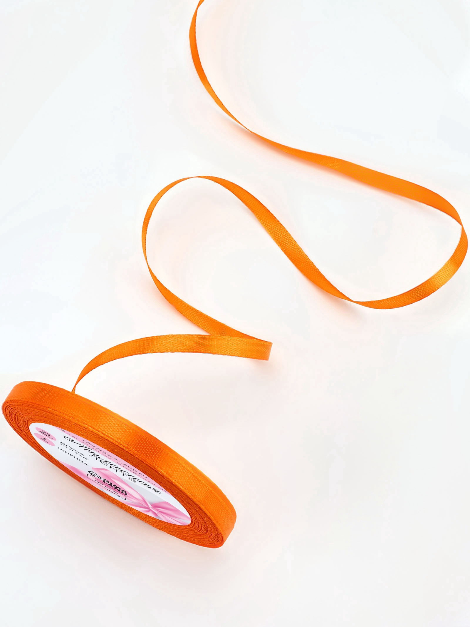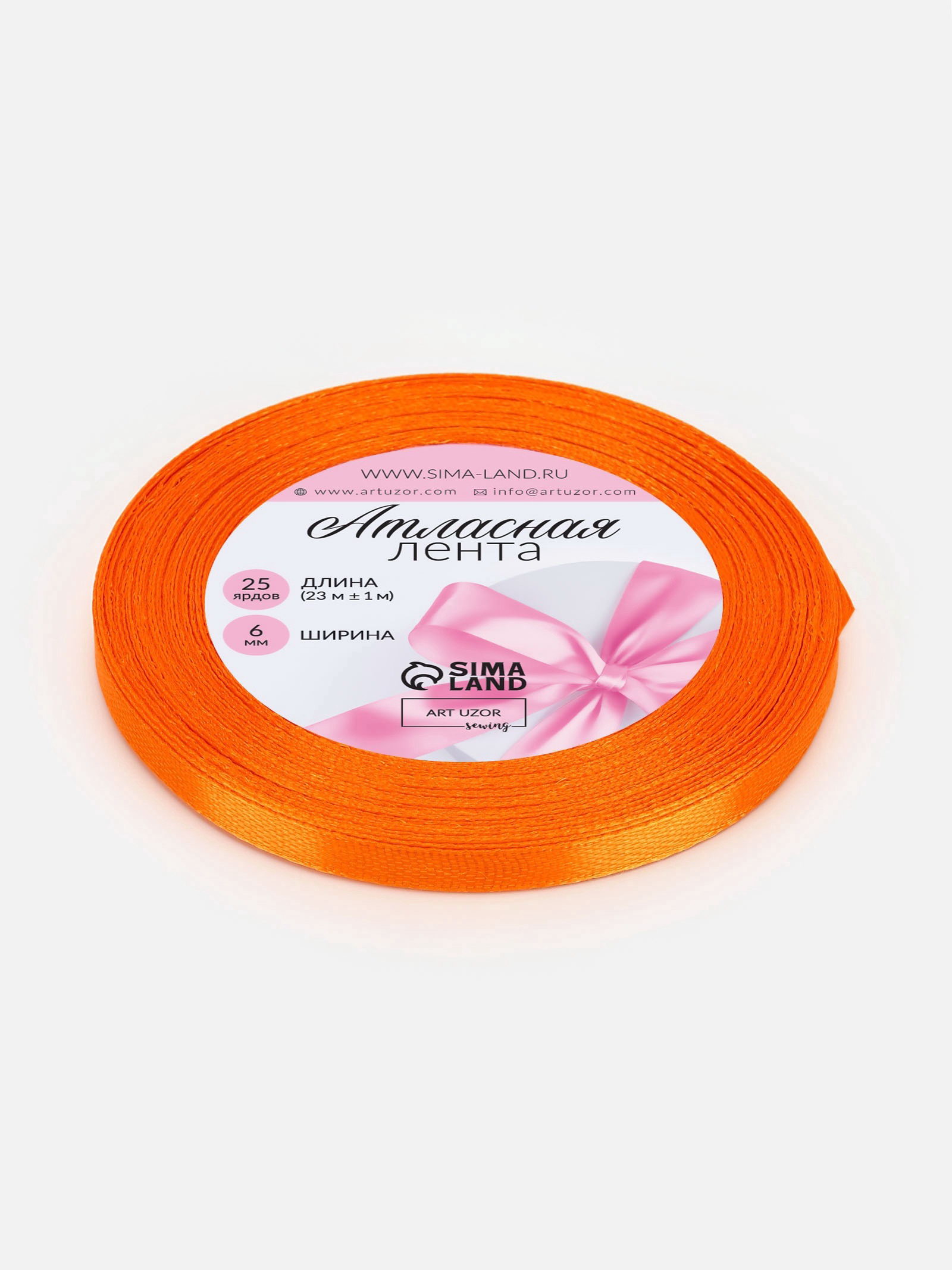 Лента атласная, 6 мм, 23+-1 м, ярко-оранжевая №25, 9x9x0.6 см., Арт Узор, Китай