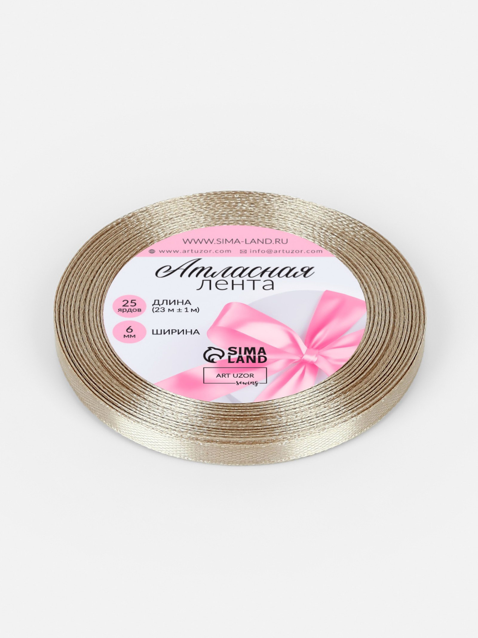Лента атласная, 6 мм, 23+-1 м, тёмно-кремовая №268, 9x9x0.6 см., Арт Узор, Китай