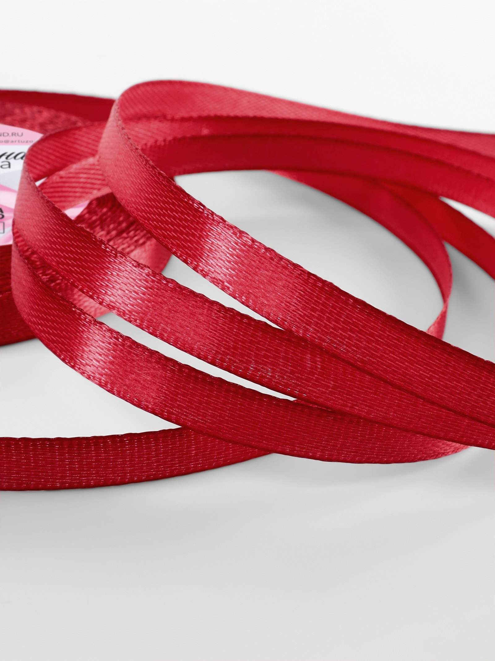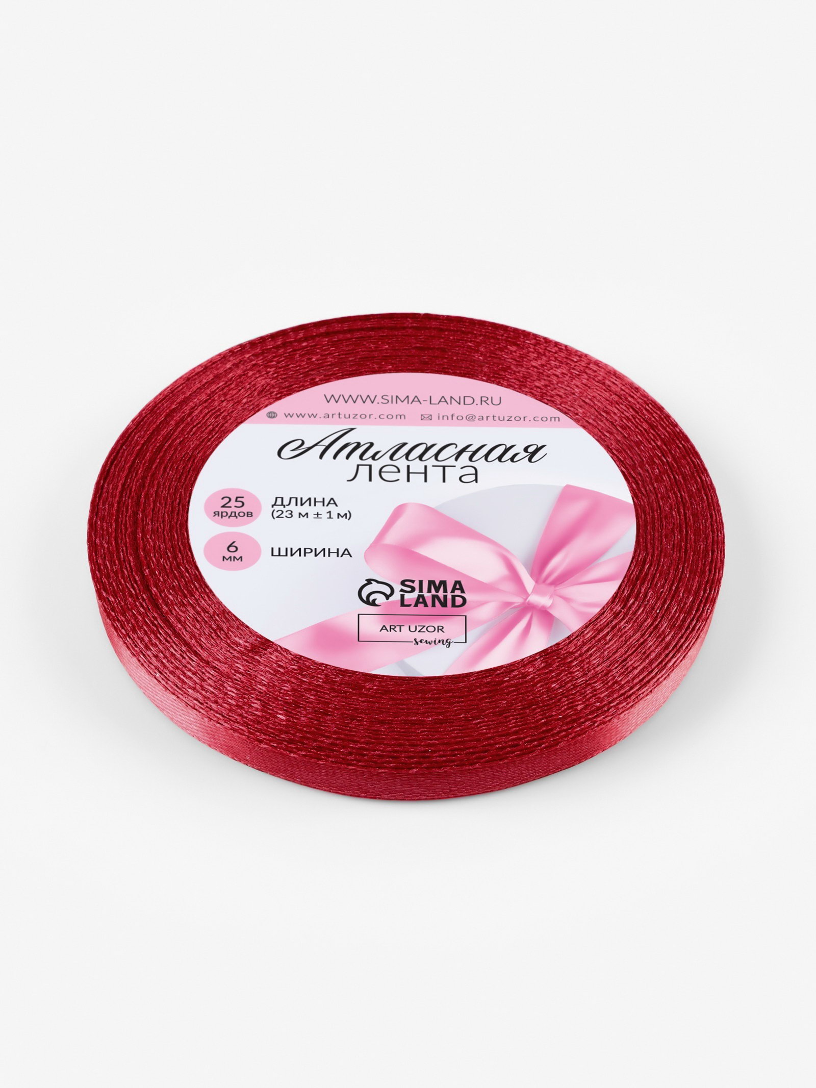 Лента атласная, 6 мм x 23 +- 1 м, цвет глубокий красный №33, 9x9x0.6 см., Арт Узор, Китай