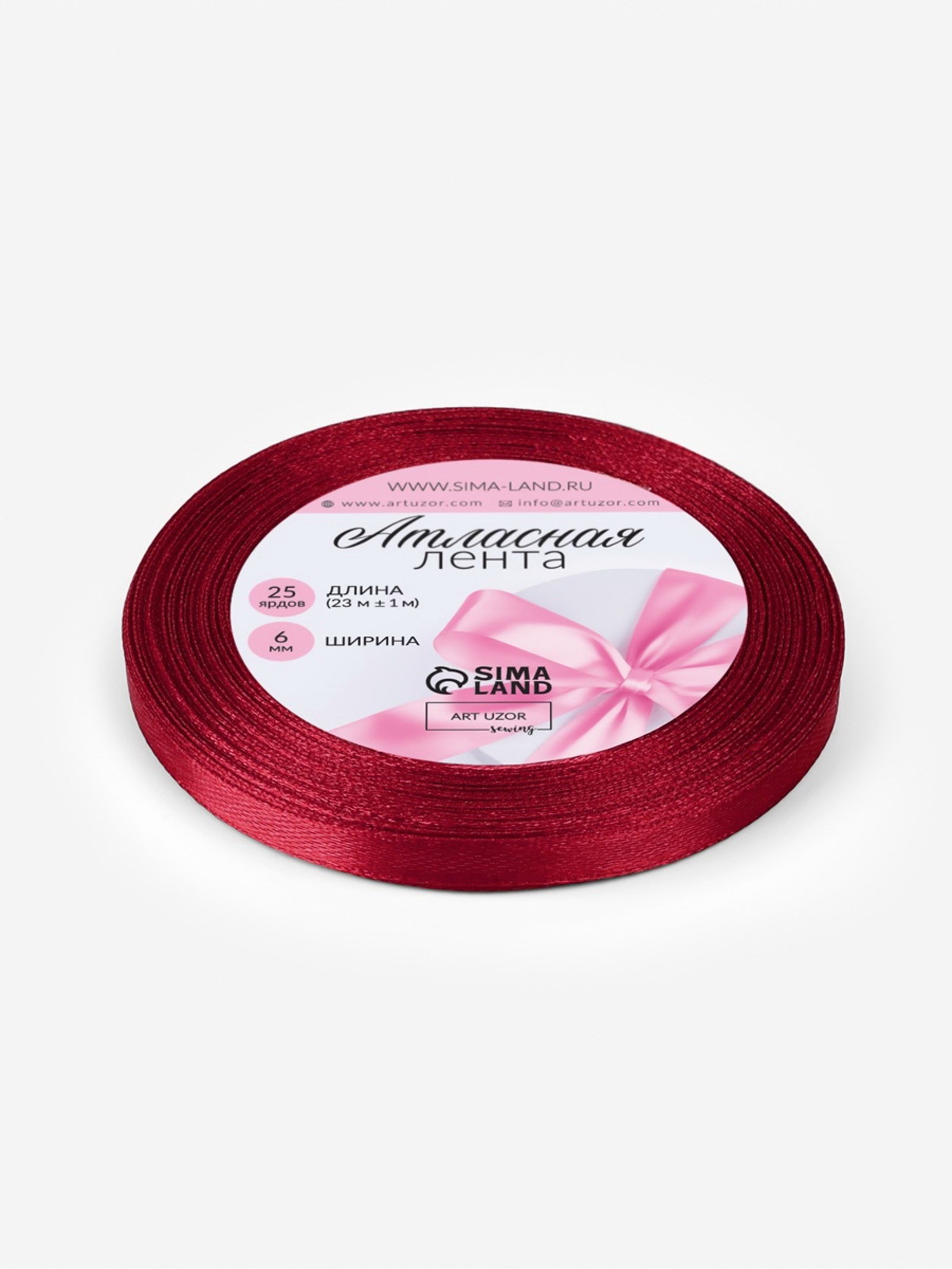 Лента атласная, 6 мм, 23+-1 м, бордовая №37, 9x9x0.6 см., Арт Узор, Китай