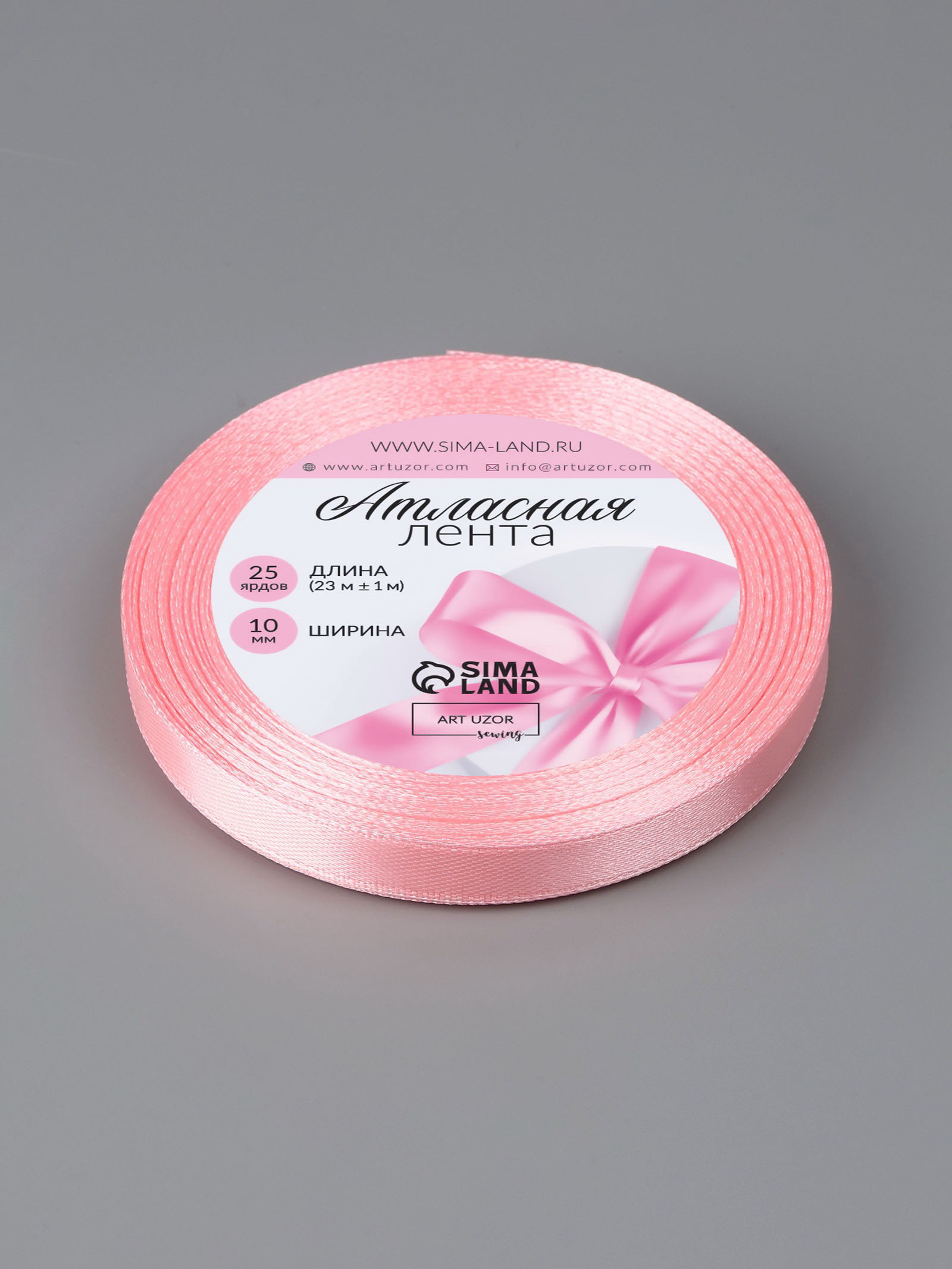 Лента атласная, 10 мм, 23+-1 м, розовая №04, 9x9x1 см., Арт Узор, Китай