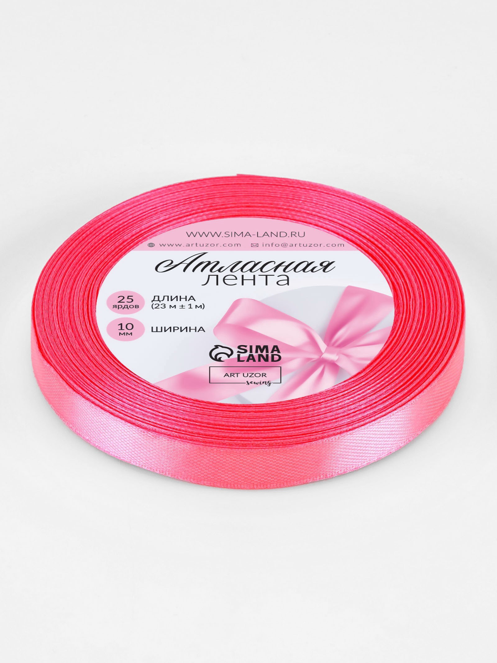 Лента атласная, 10 мм, 23+-1 м, насыщенно-розовая №05, 9x9x1 см., Арт Узор, Китай