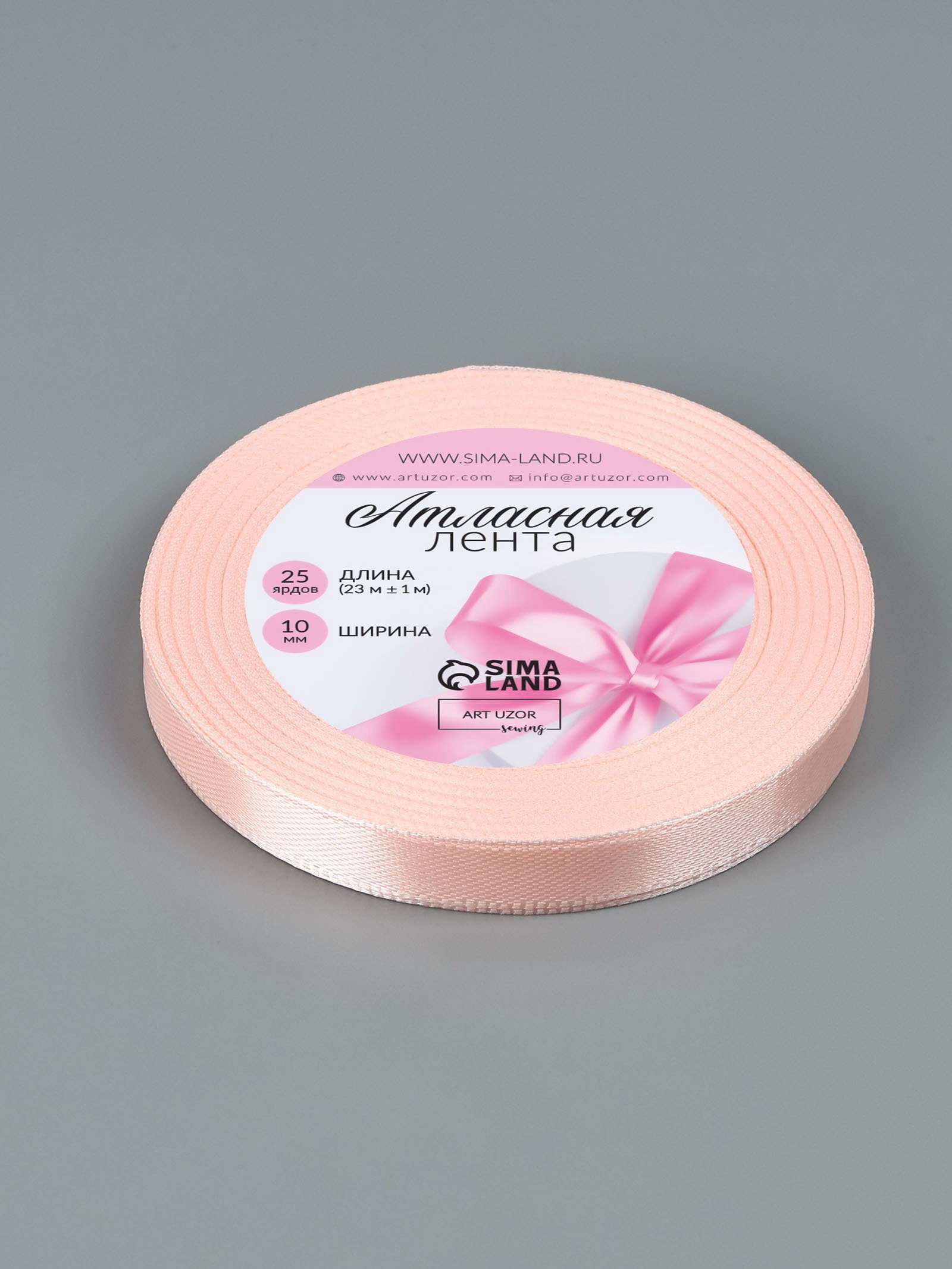 Лента атласная, 10 мм, 23+-1 м, пастельно-розовая, 9x9x1 см., Арт Узор, Китай
