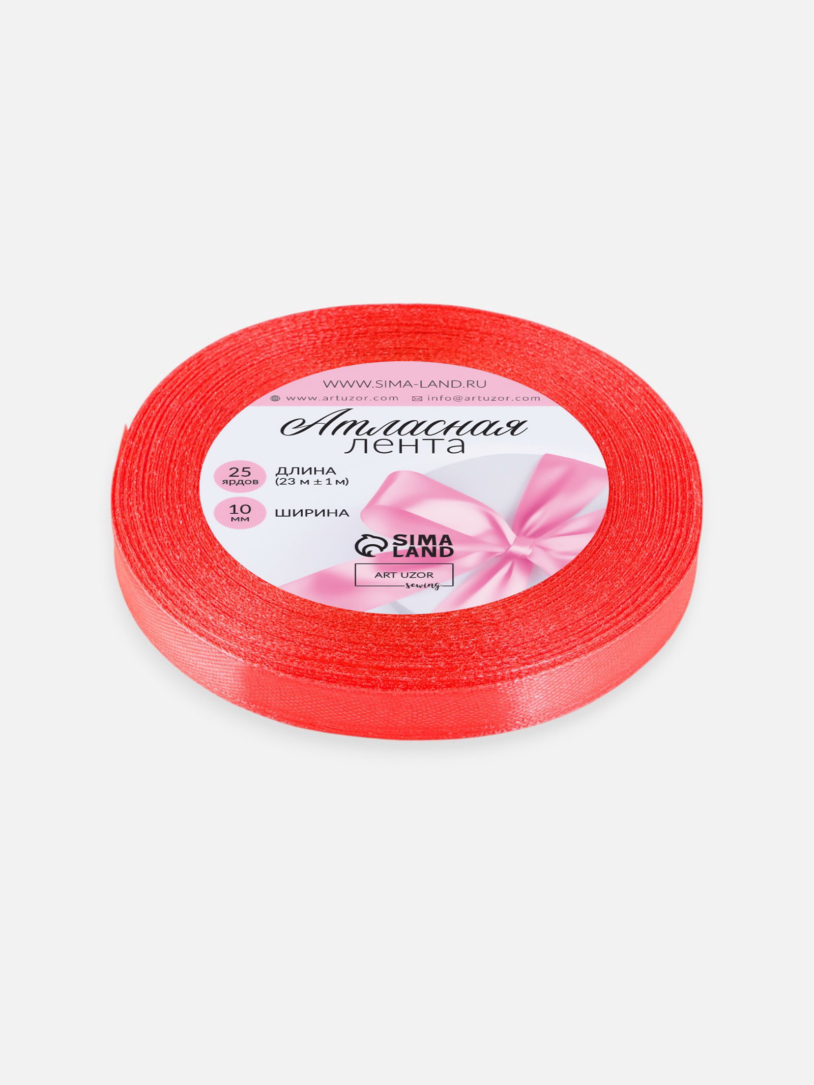 Лента атласная, 10 мм, 23+-1 м, розовая №129, 9x9x1 см., Арт Узор, Китай